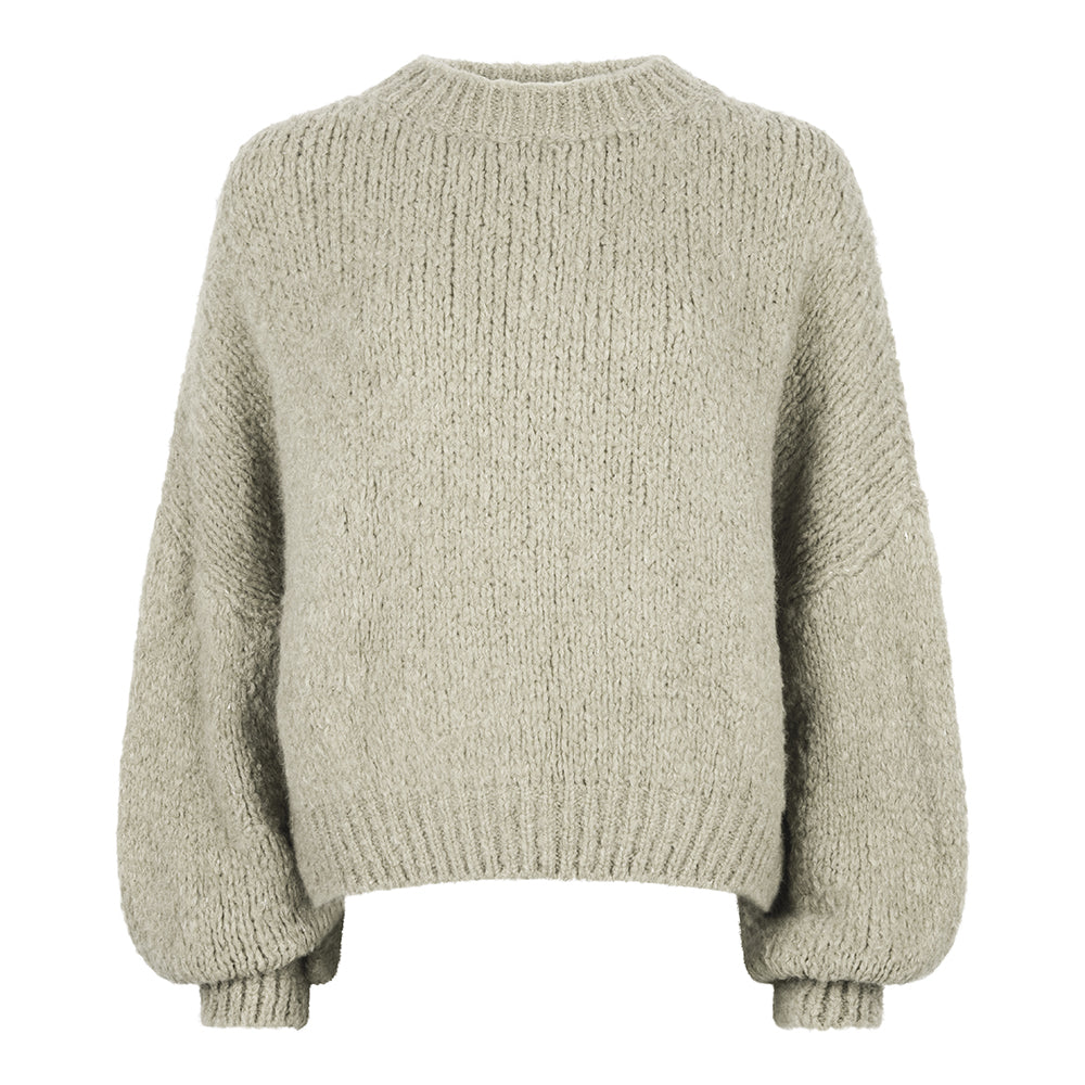 De trui heeft een super zachte stof, een ruime pasvorm, een ronde hals, ballonmouwen en rib randen. De trui zit heerlijk en is leuk te combineren met een rok of jeans.