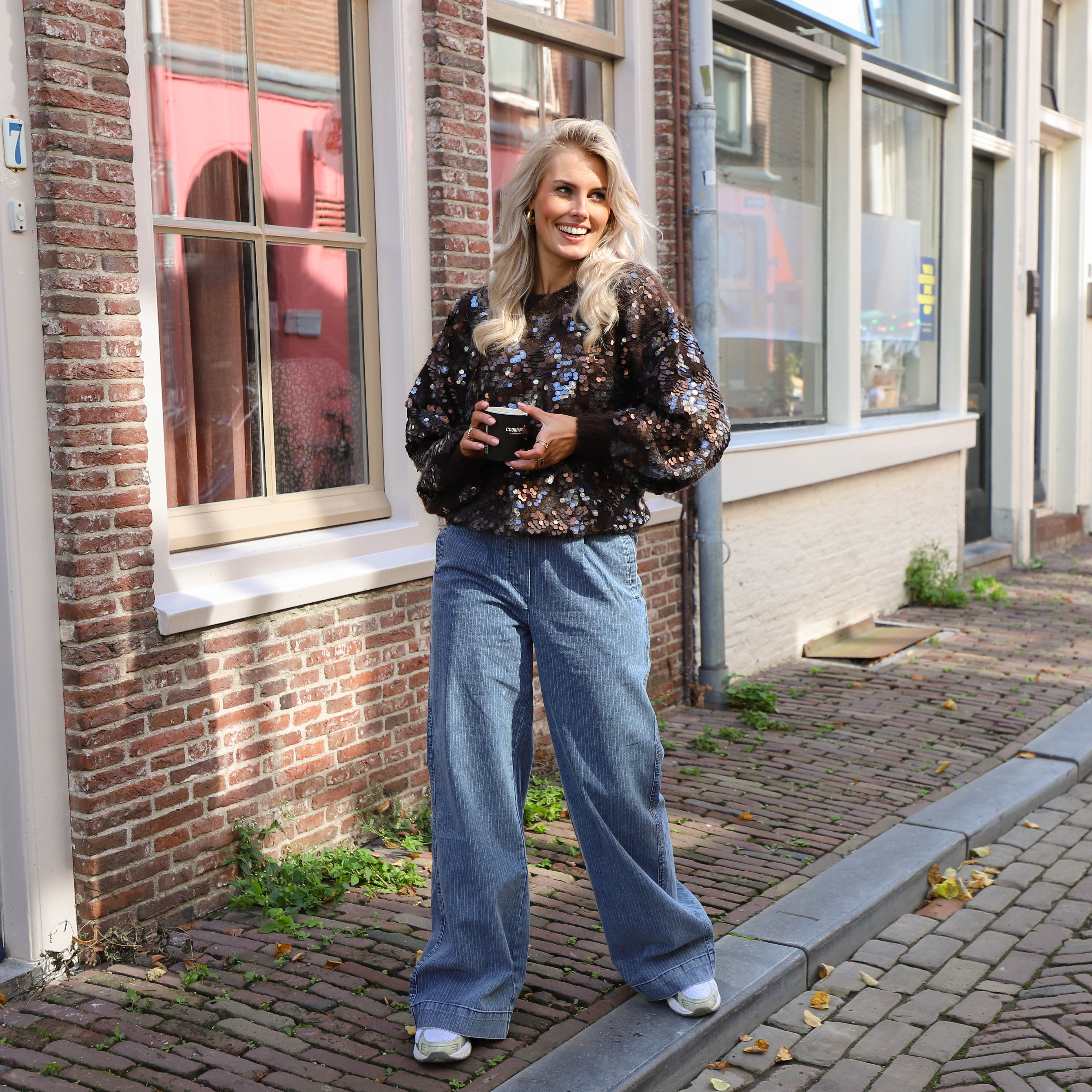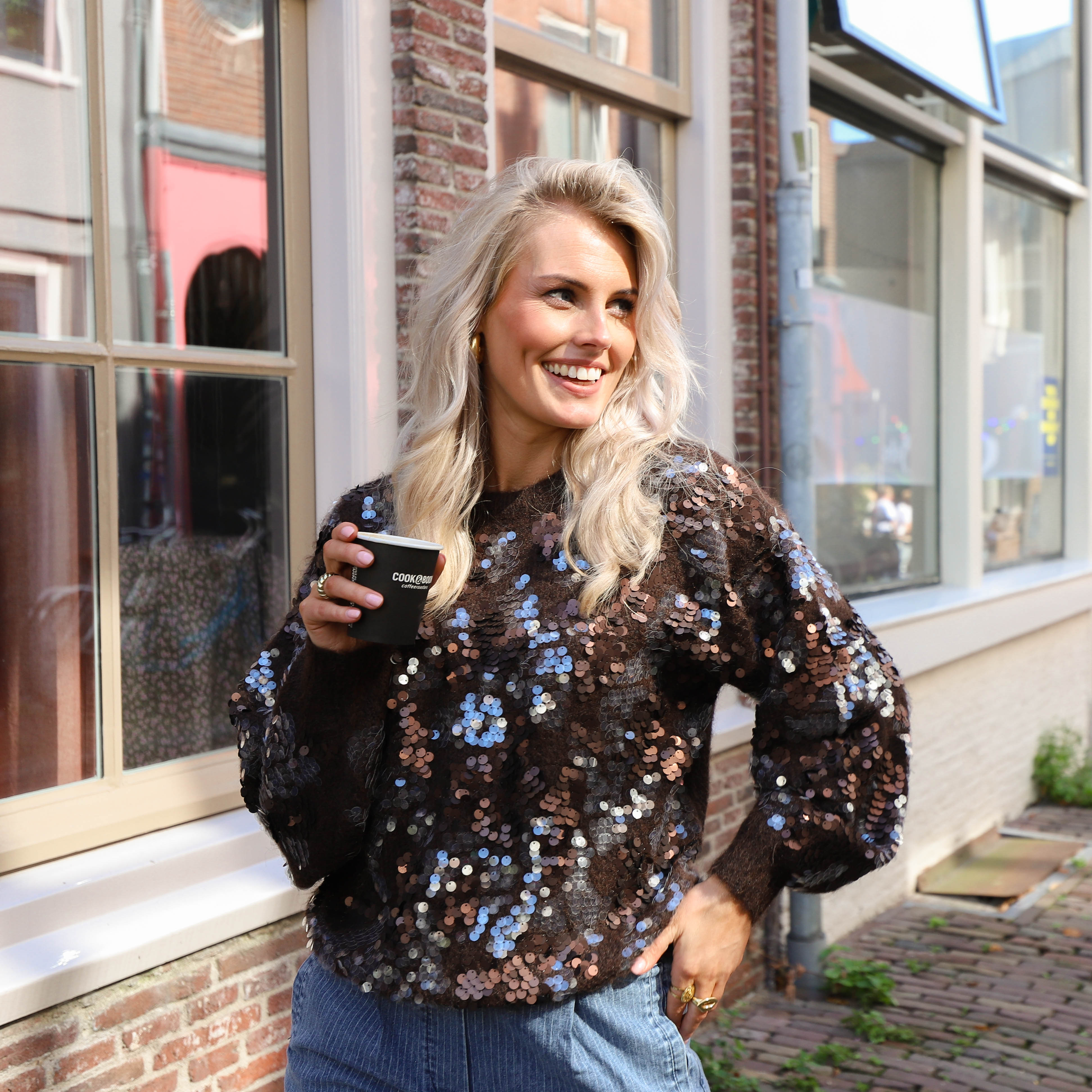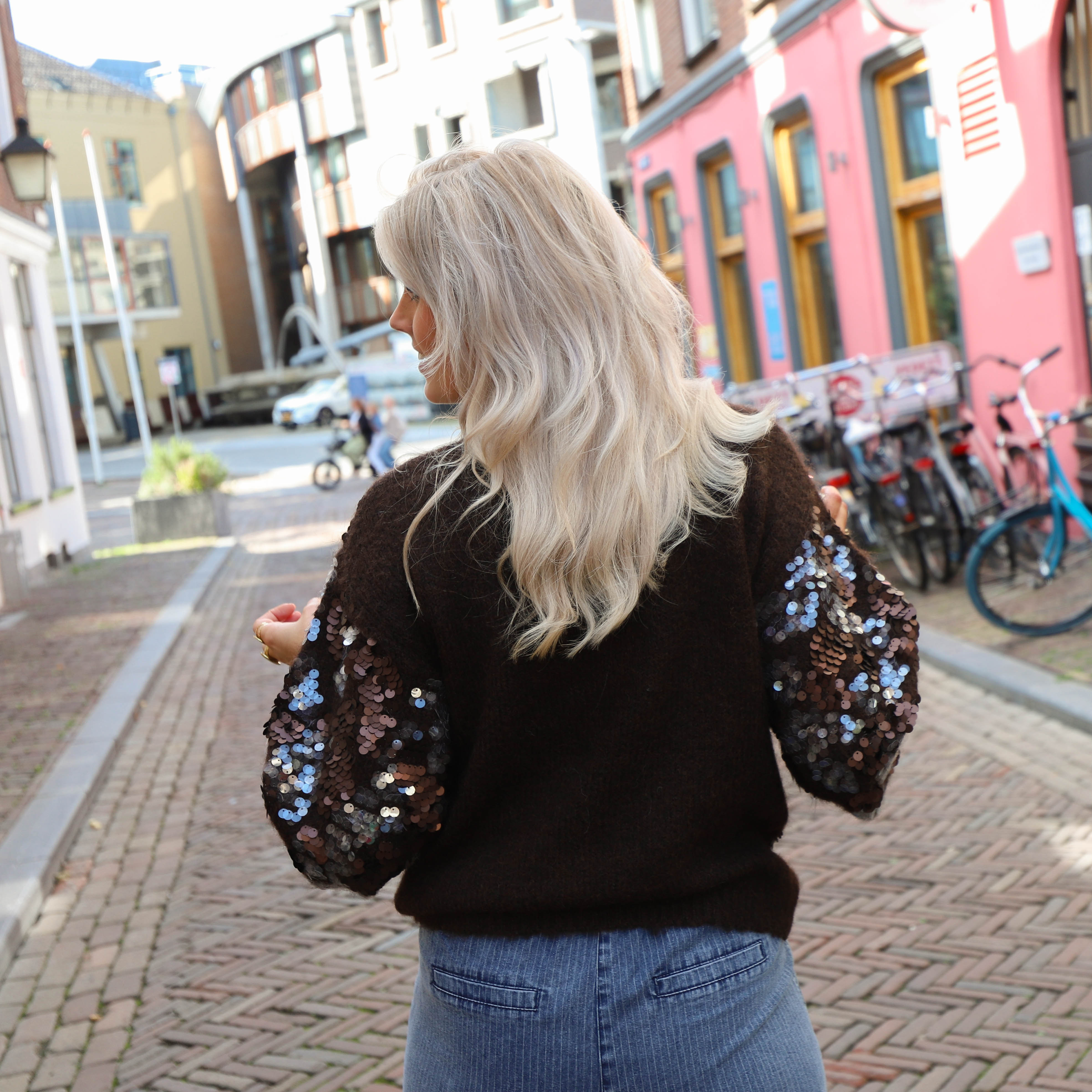 Pailletten knit trui bruin