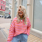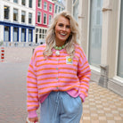 Smiley streep vest roze oranje