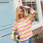 Dit gestreepte shirt is een speels en opvallend item met een frisse, retro uitstraling. De combinatie van groen en roze strepen geeft het shirt een vrolijke en energieke look, terwijl de zachte katoenstof zorgt voor een comfortabel en luchtig draaggevoel. Het subtiele borstdetail met tekst voegt een casual en sportieve touch toe.