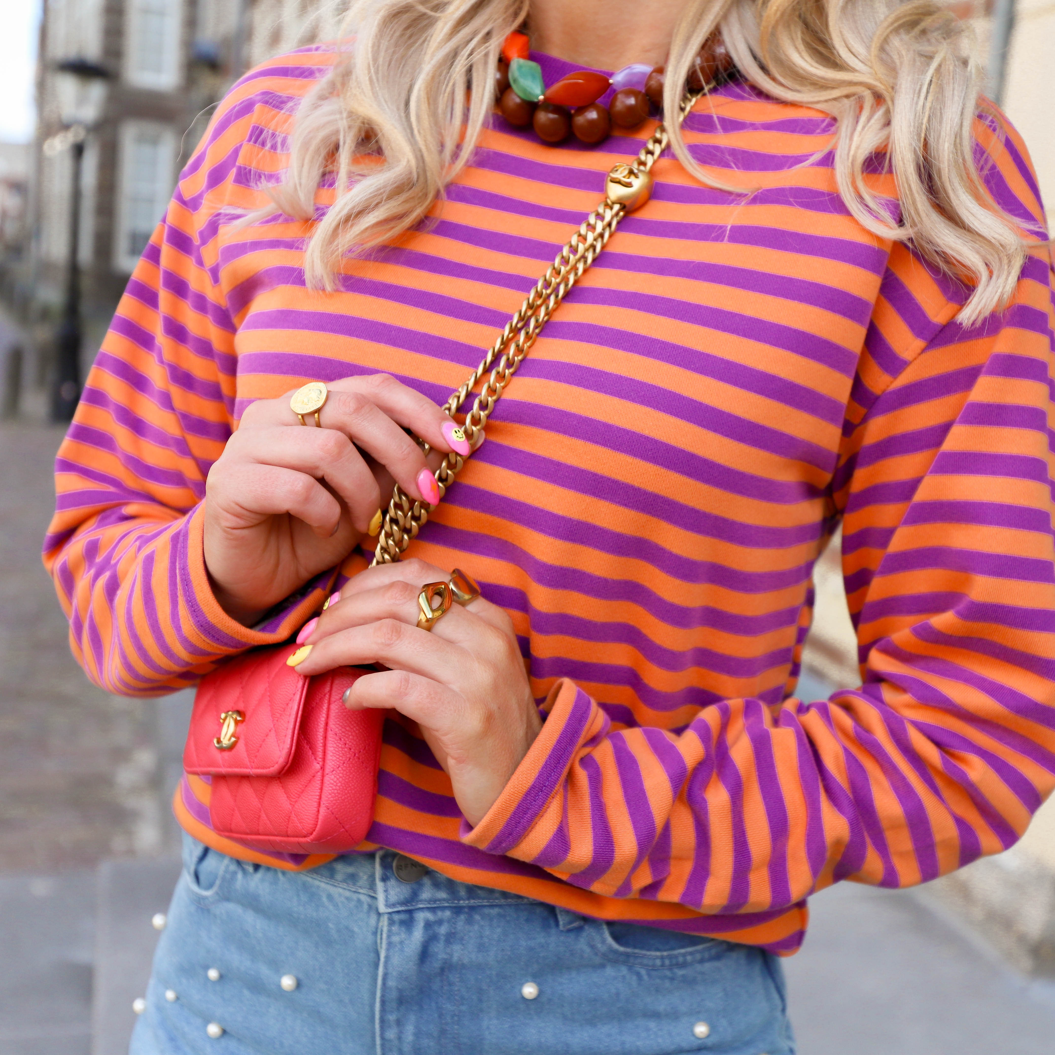 Streep top sweat oranje paars