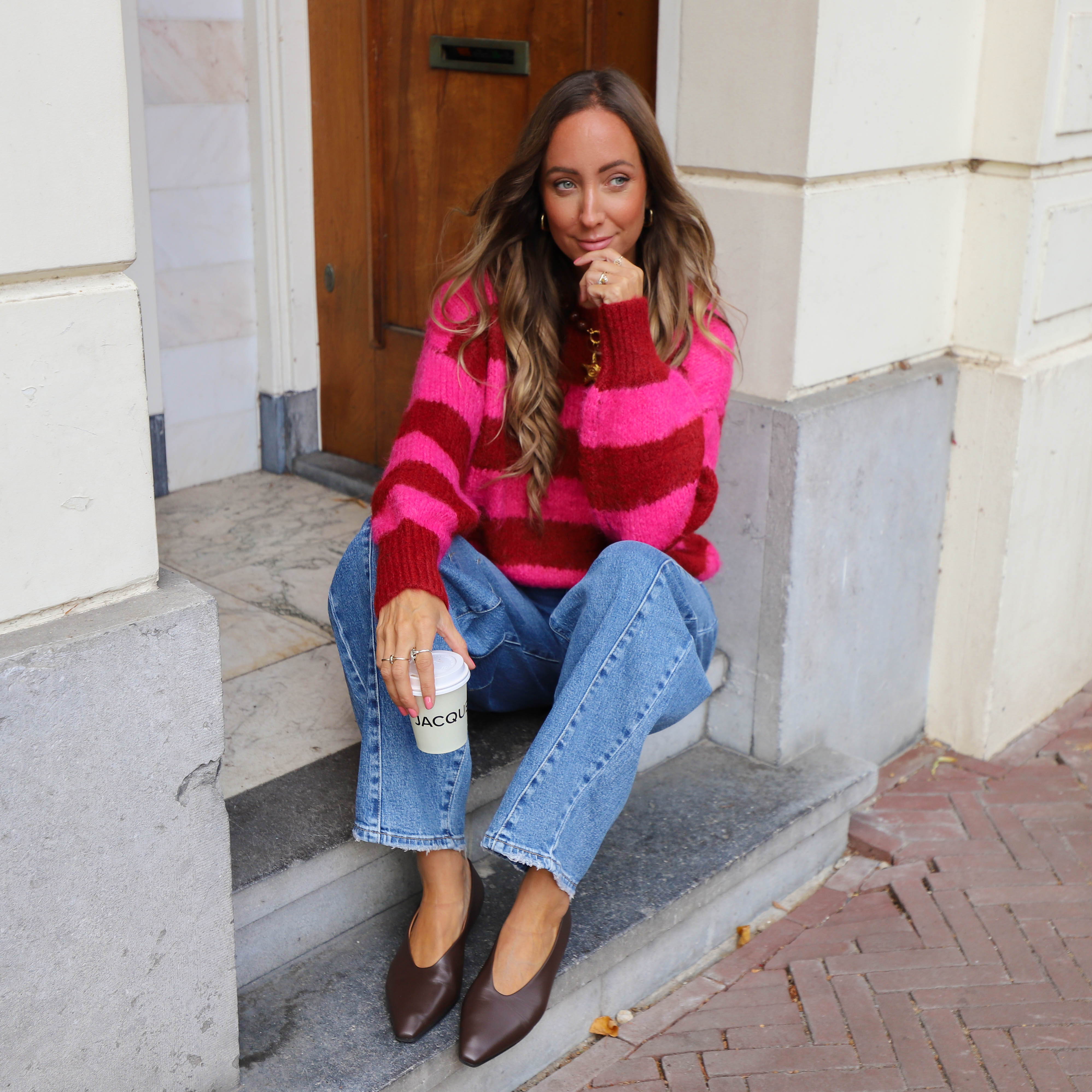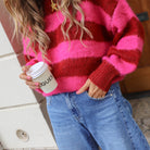 Streep trui fuchsia burgundy