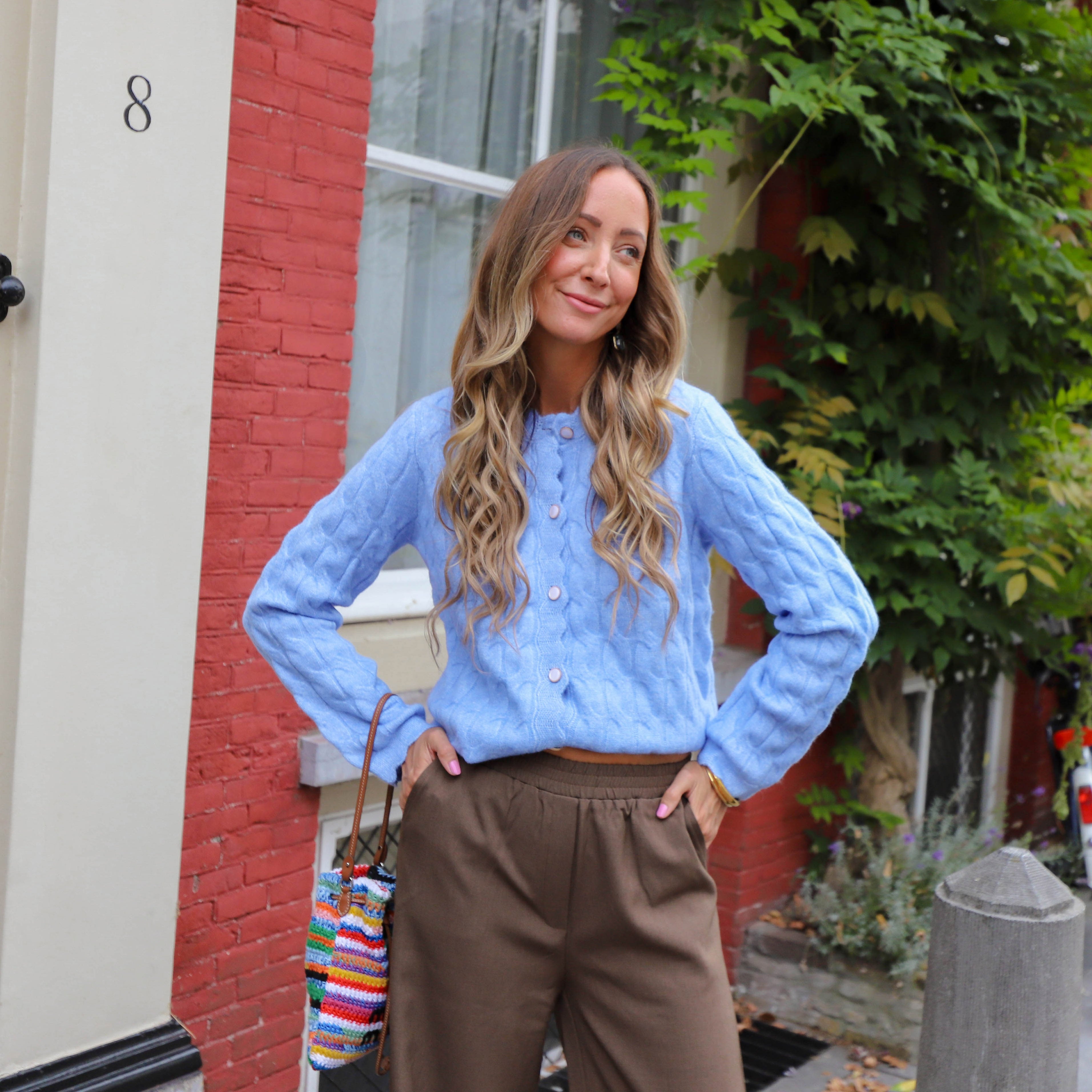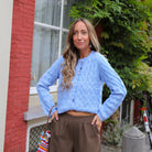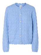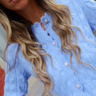 De Vista Cardigan is een comfortabel en stijlvol vest in een zachte blauwe kleur. Het vest heeft een licht oversized pasvorm, lange mouwen en sluit met knopen aan de voorkant. De gebreide textuur met een subtiel patroon en de zachte stof geven het item een warme en comfortabele uitstraling. De ronde hals is afgewerkt met een golfpatroon, wat een speels en elegant detail toevoegt.
