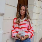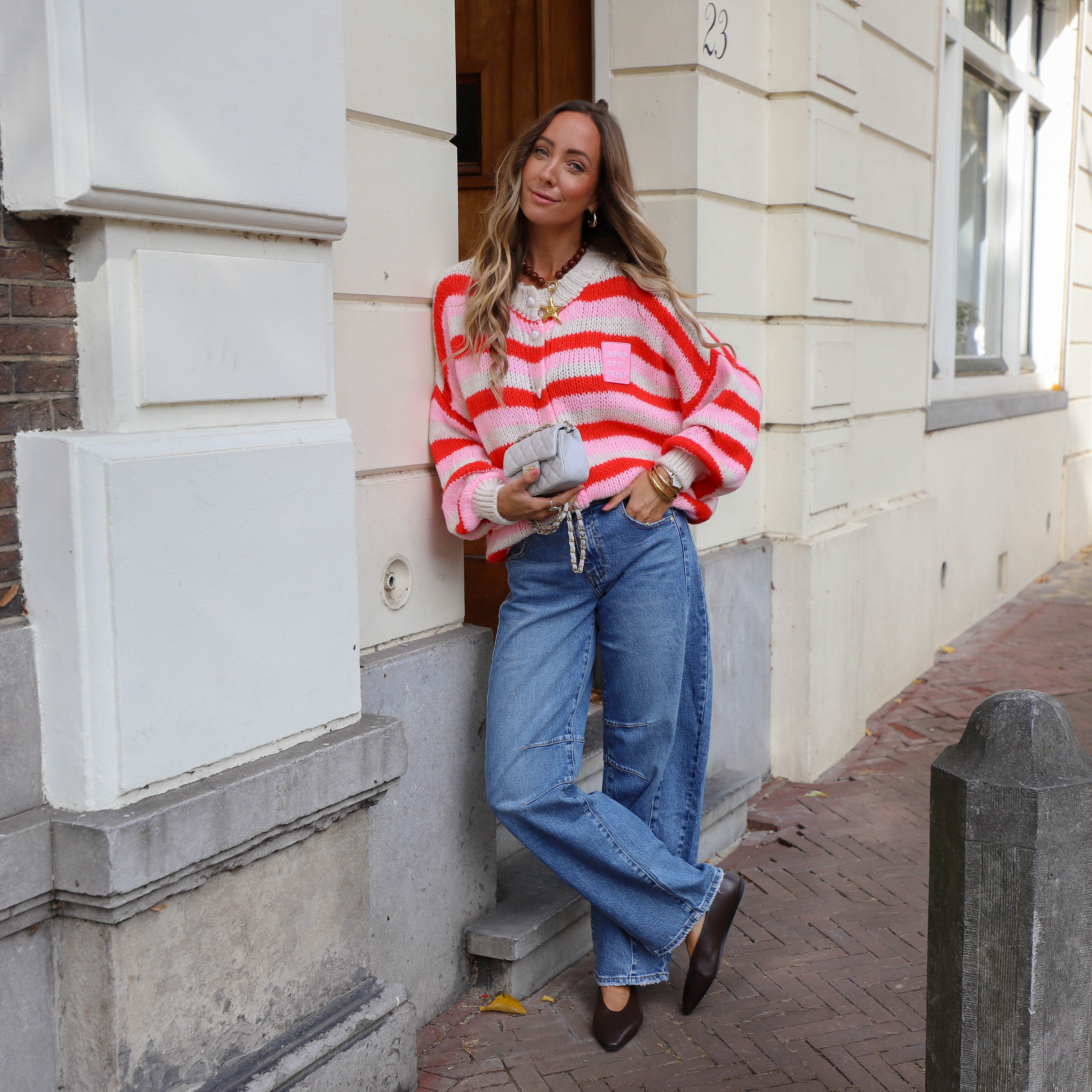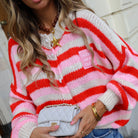 Geef je outfit een trendy twist met dit superzachte vest met strepen. Dit vest heeft een ronde hals, lange mouwen met elastische manchetten en sluit met schattige hartvormige knoopjes aan de voorkant. Het vest is gemaakt van een zachte mix van materialen in opvallende kleuren en heeft een opvallend label met de tekst 'Crème de la Crème'.