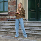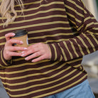 Deze Streep Top is een cropped essential die comfort en stijl moeiteloos combineert. De top heeft een tijdloos horizontaal streepdessin in een warme combinatie van donkerbruin en geel. De wijde, oversized pasvorm, de ronde hals en de cropped lengte maken deze trui perfect om te combineren met een high-waist jeans.