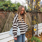Deze Streep Top is een cropped essential die comfort en stijl moeiteloos combineert. De top heeft een tijdloos horizontaal streepdessin in een warme combinatie van donkerbruin en wit. De wijde, oversized pasvorm, de ronde hals en de cropped lengte maken deze trui perfect om te combineren met een high-waist jeans.