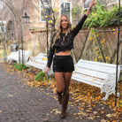De top heeft een klassieke ronde hals en een trendy cropped lengte. De lange mouwen en de opvallende bewerking maken dit een perfect statement item om te dragen over een bralette of basic top.