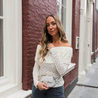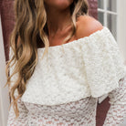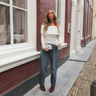Deze Shoulder Top Fem is een romantische en trendy toevoeging aan je topcollectie. De top is gemaakt van een rekbare stof met een unieke, bobbelige (crush) textuur in een zachte ecru kleur.