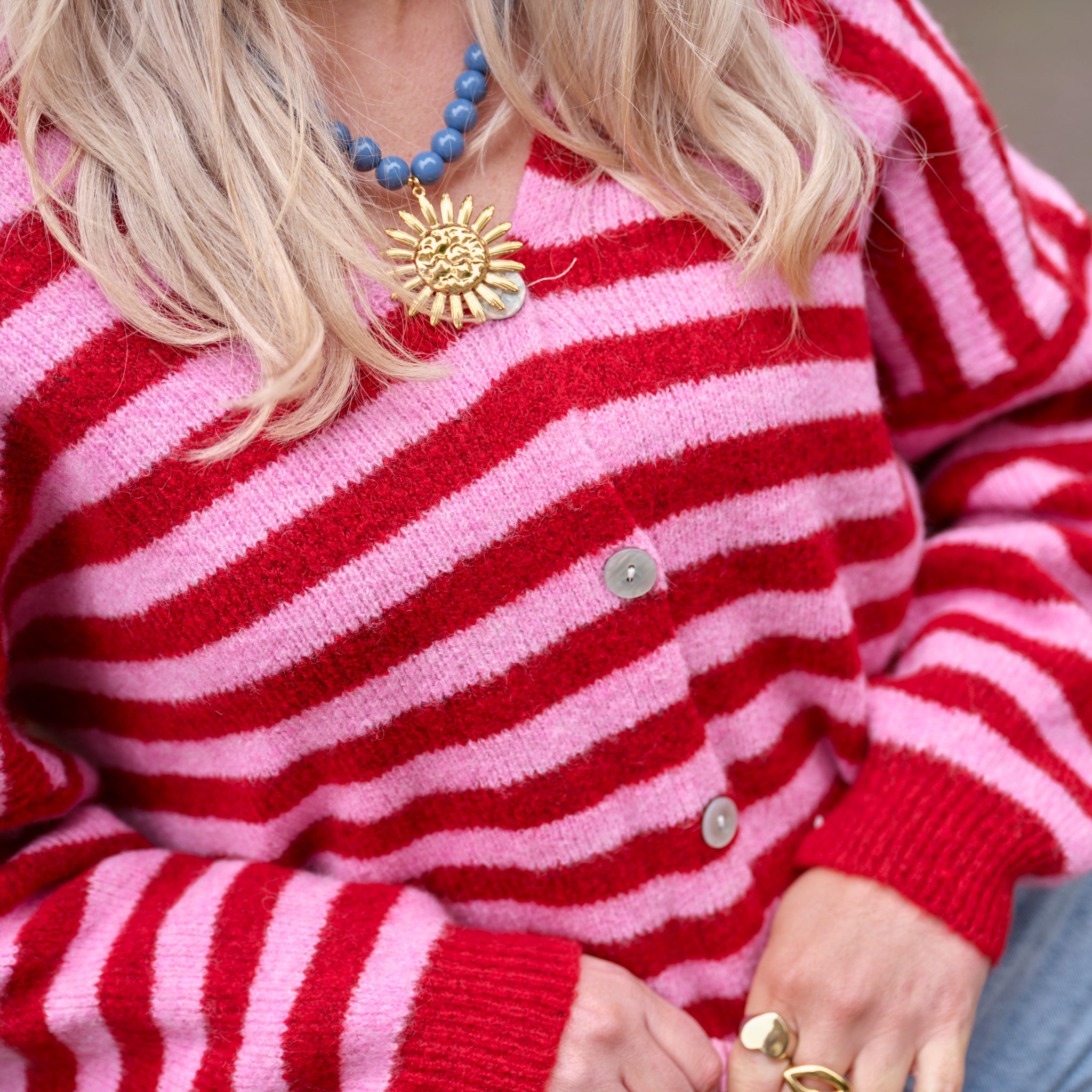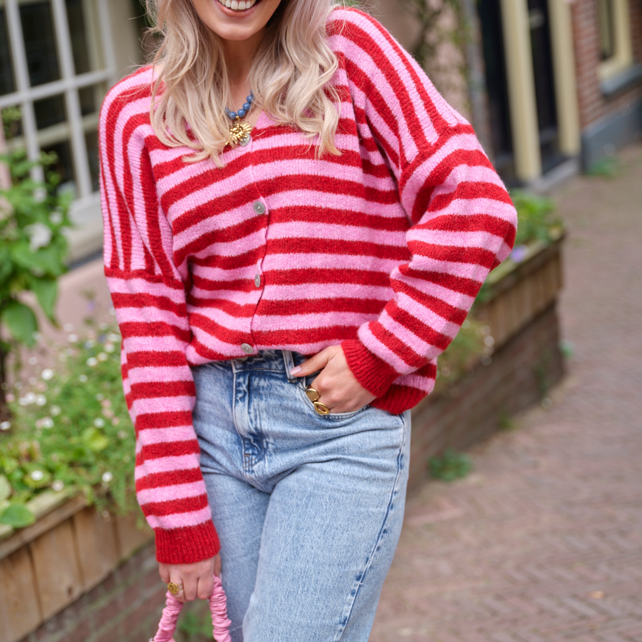 Joy streep vest roze rood