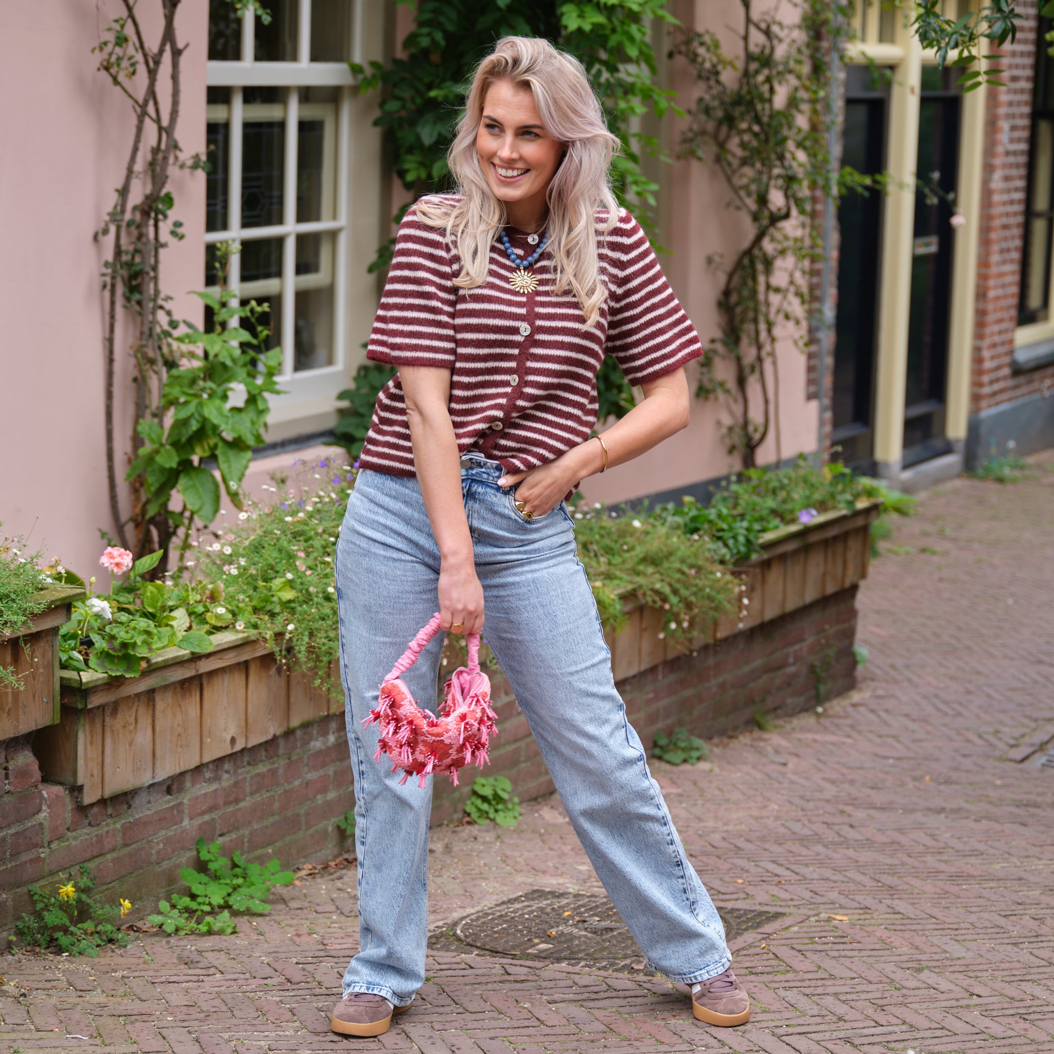 Handmade streep vest roze rood