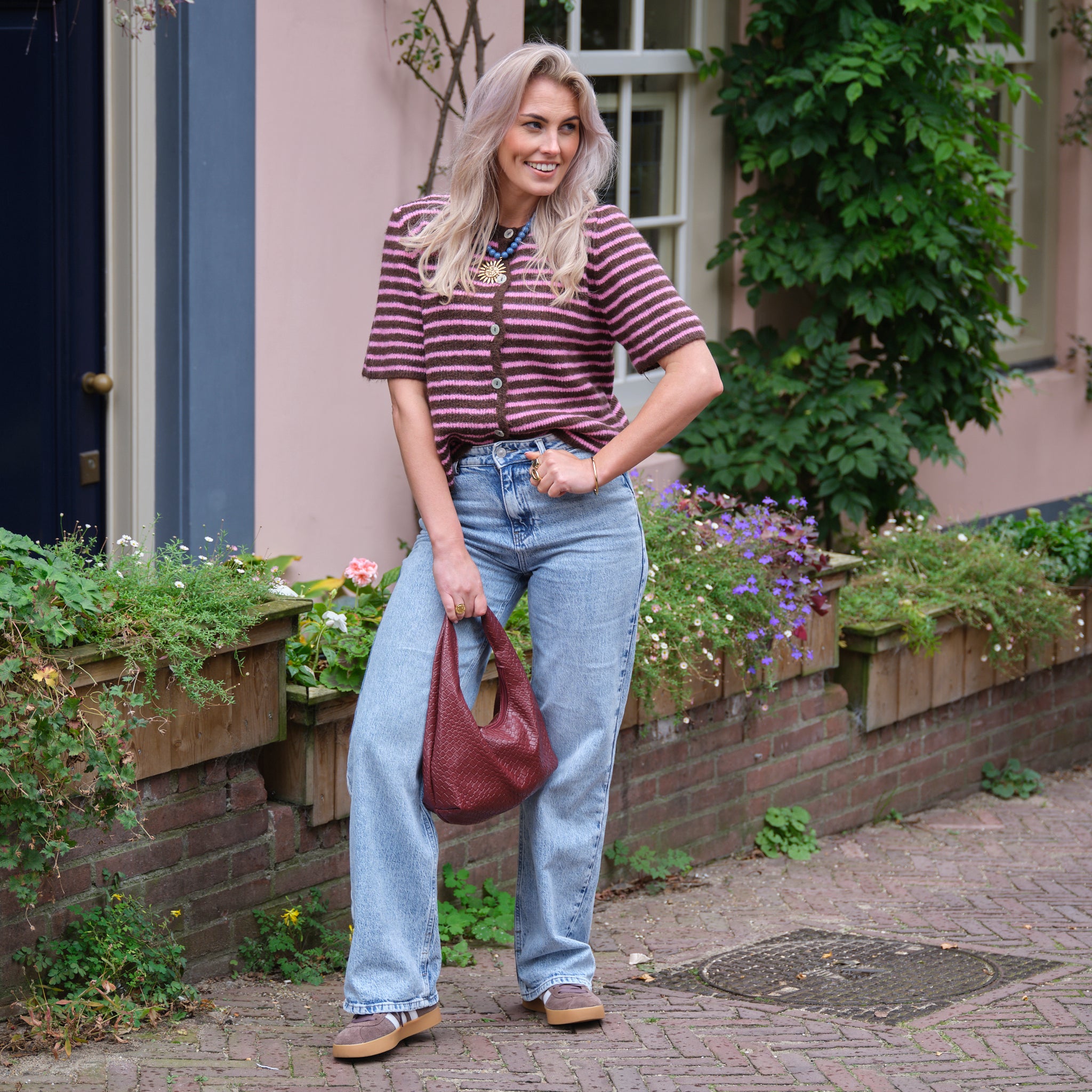 Zoe vest streep roze burgundy