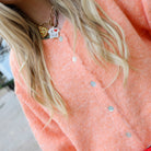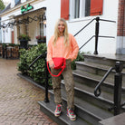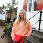 Mooie lichtkleurig vestje in peach. Het vestje sluit met parelmoerknopen en staat leuk met een leopard broek.