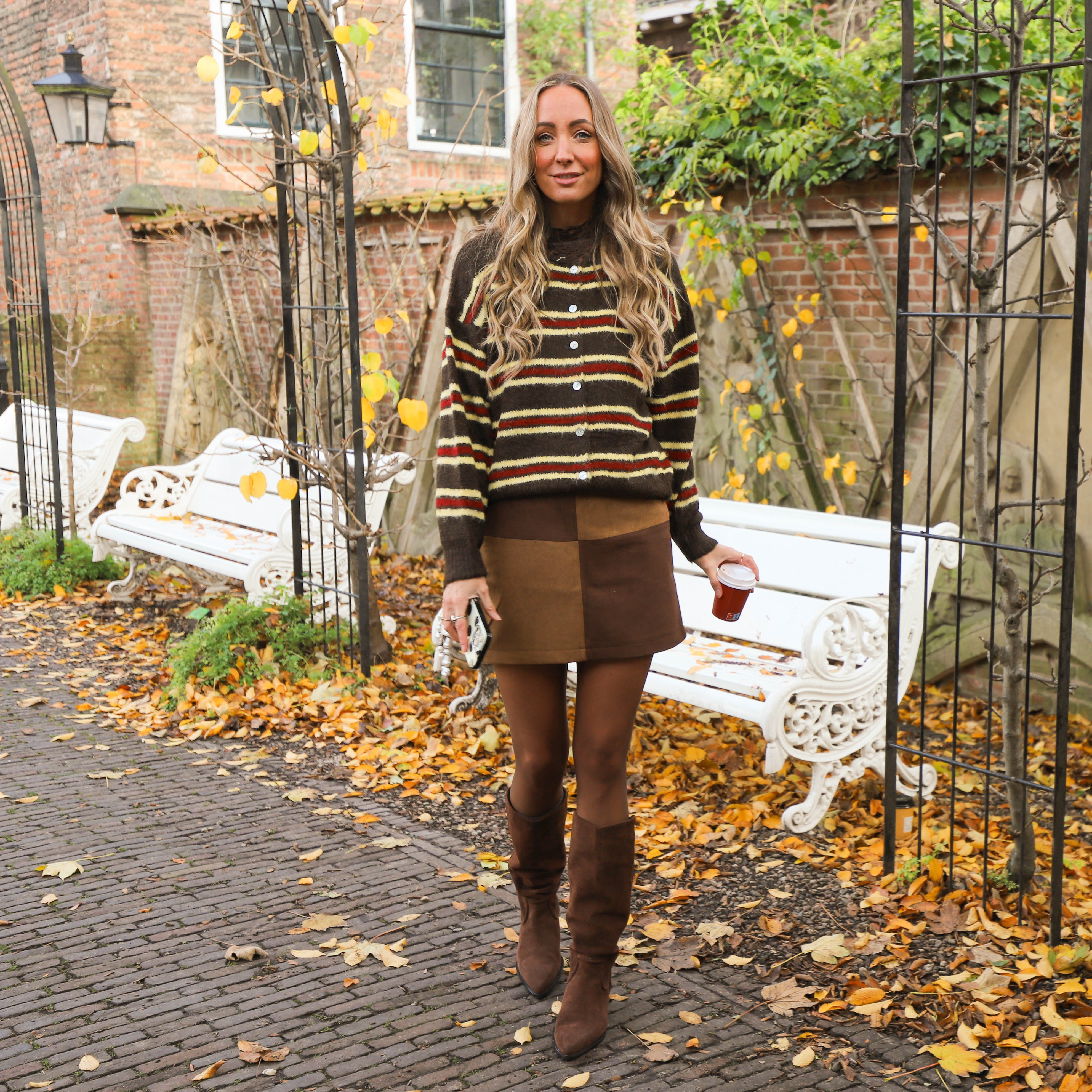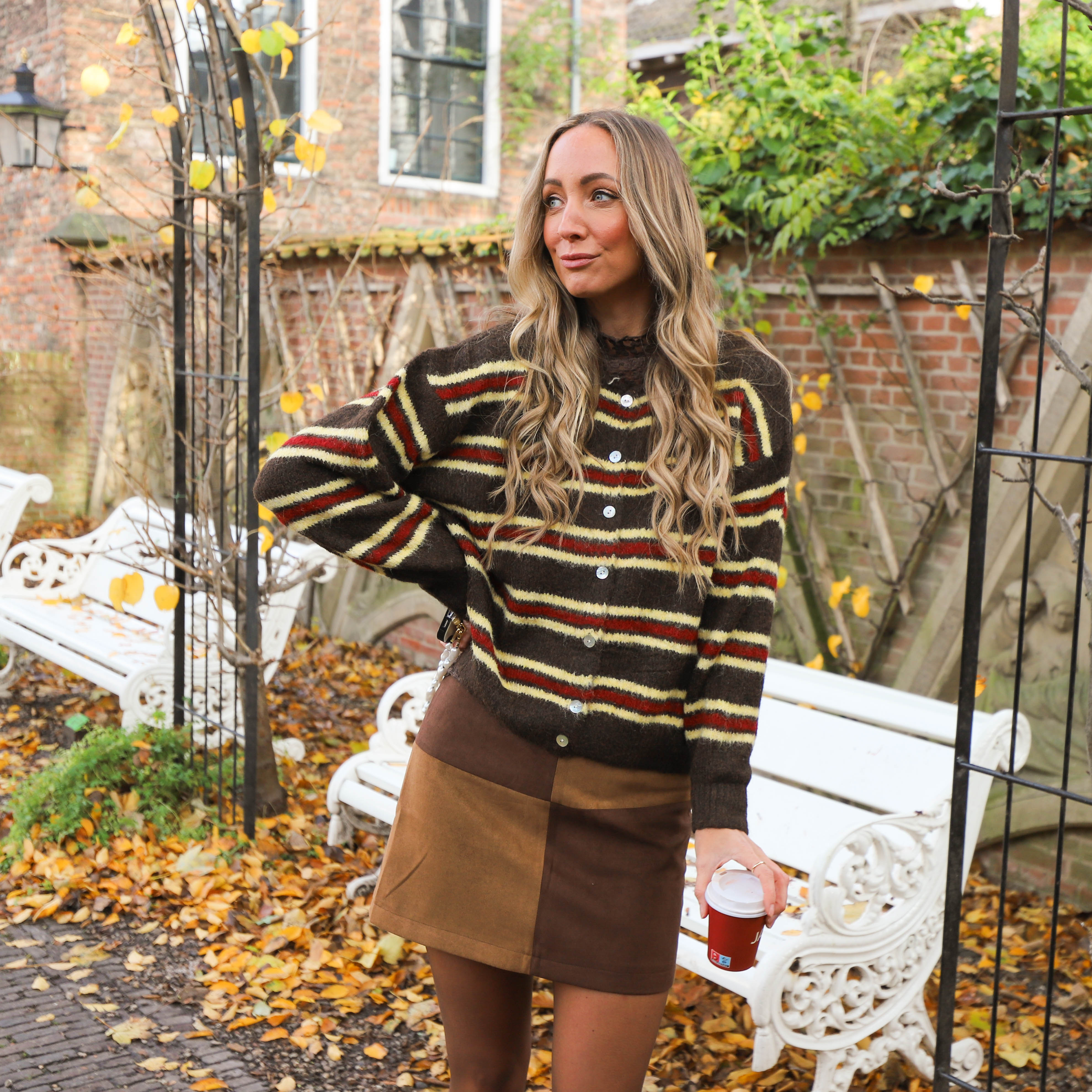 Streep gilet bruin ecru