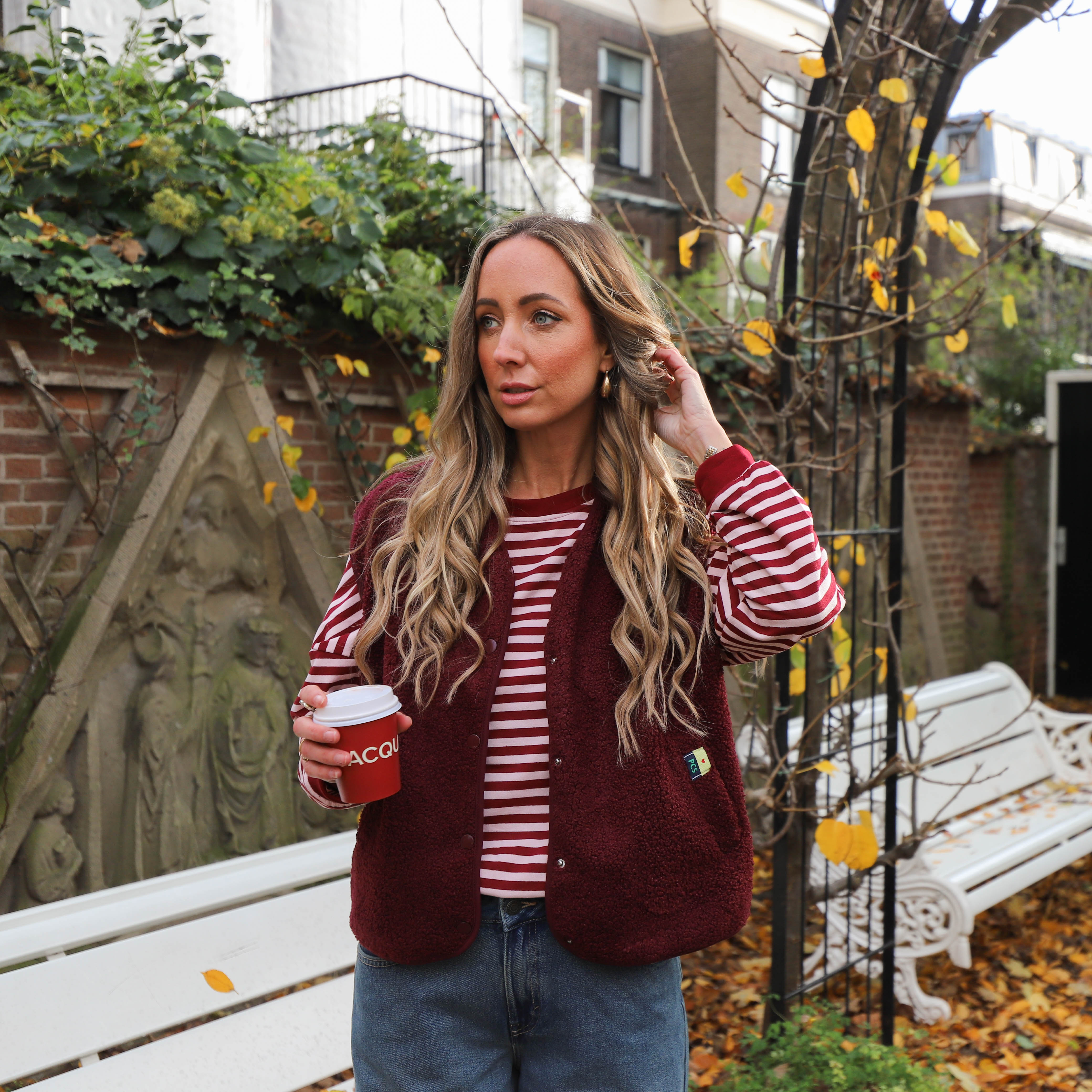 Streep vest coffee bordeaux
