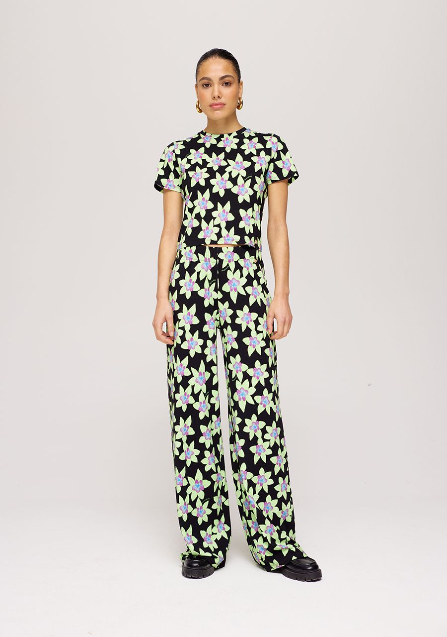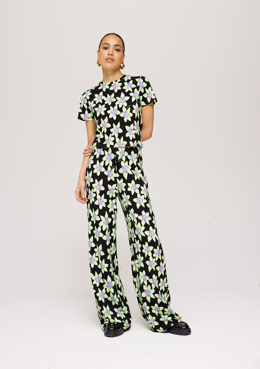 Die Hose JANE ist durch den grünen Blütenprint ein echter Hingucker. Diese Hose hat eine bequeme Passform und einen weichen Stoff, der Ihnen den ganzen Tag über mühelose Bewegungen ermöglicht. Tragen Sie die JANE-Hose mit dem JANE-Oberteil für ein stylisches Kombi-Set, das garantiert Eindruck macht! Starten Sie voller Zuversicht in die neue Saison!