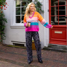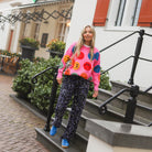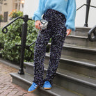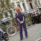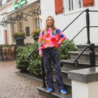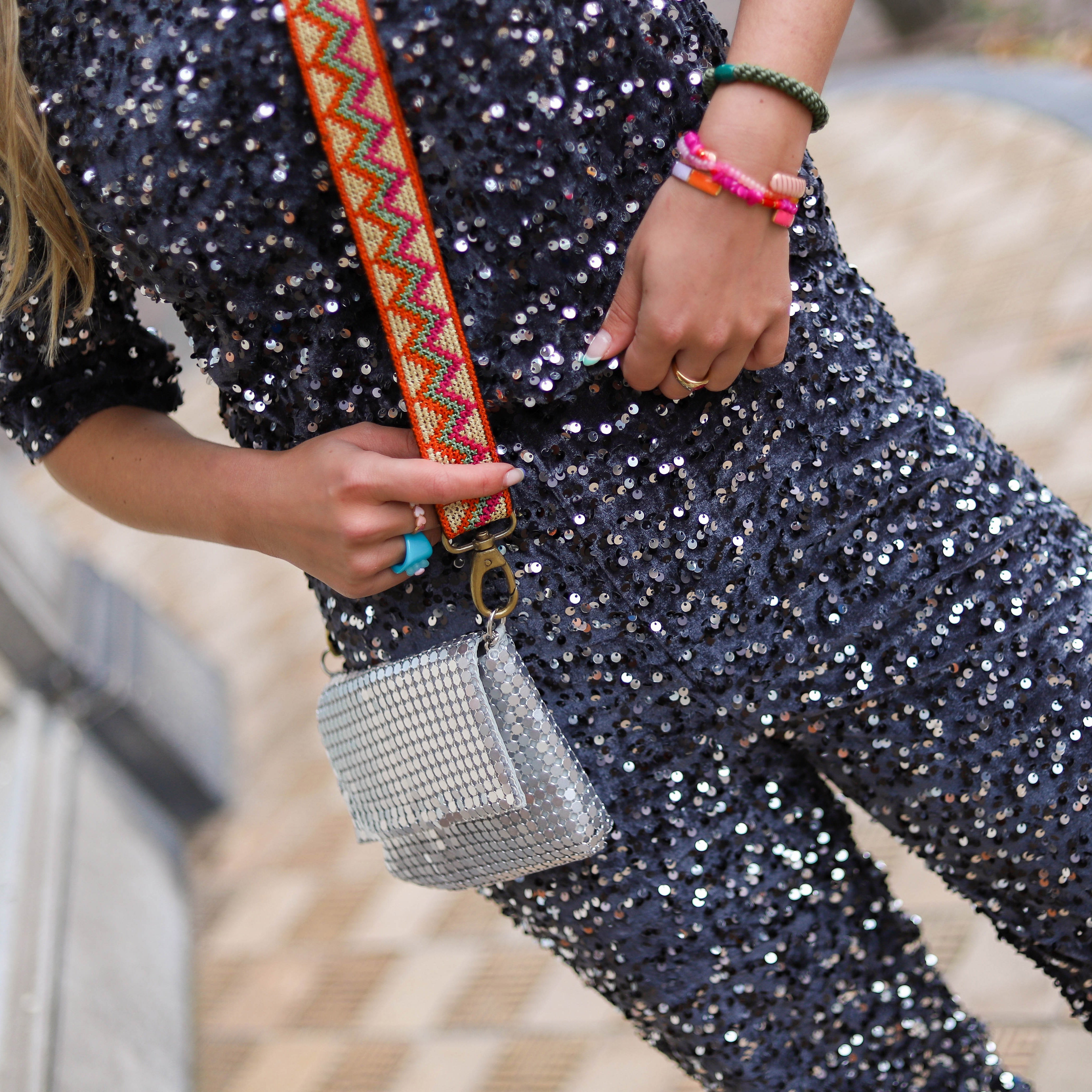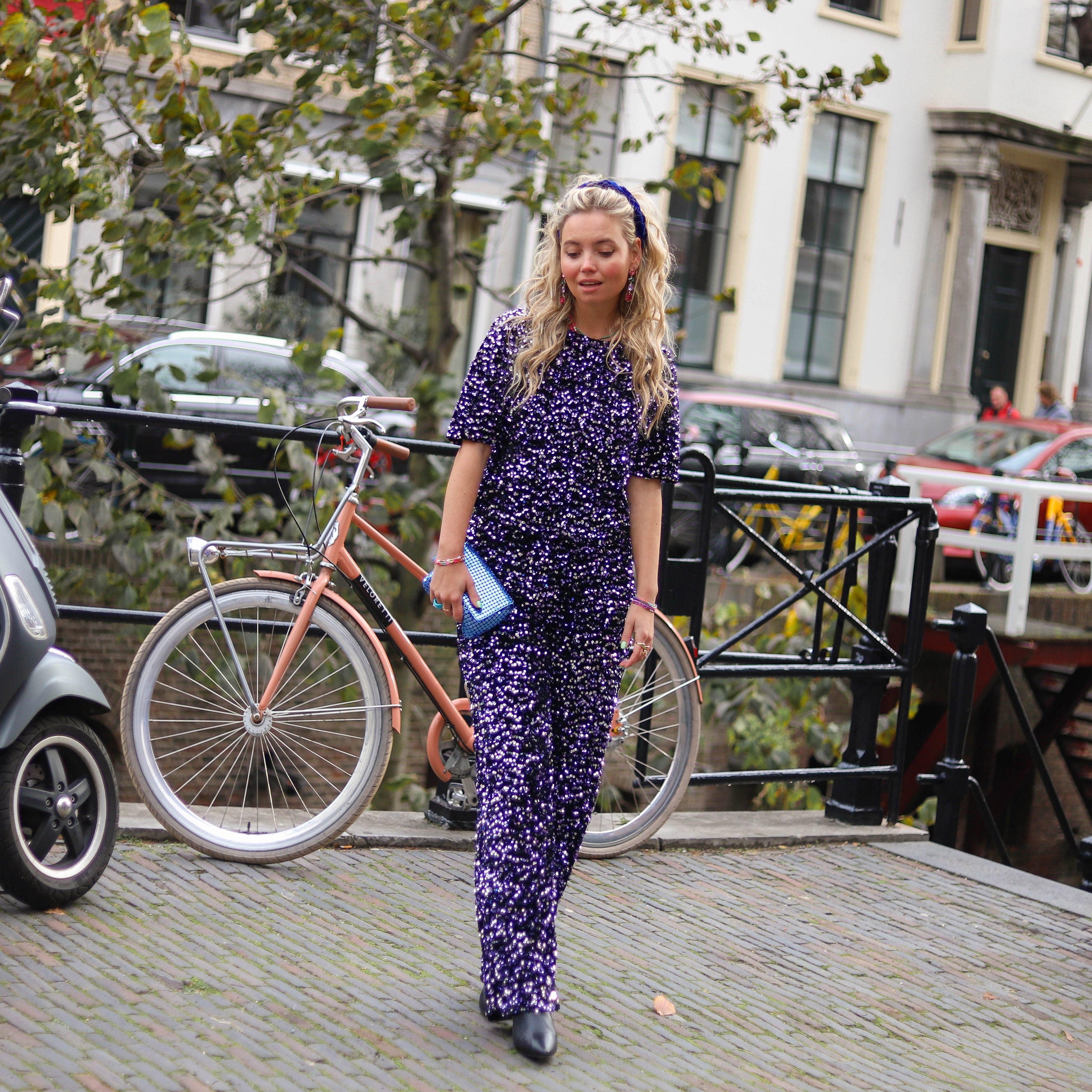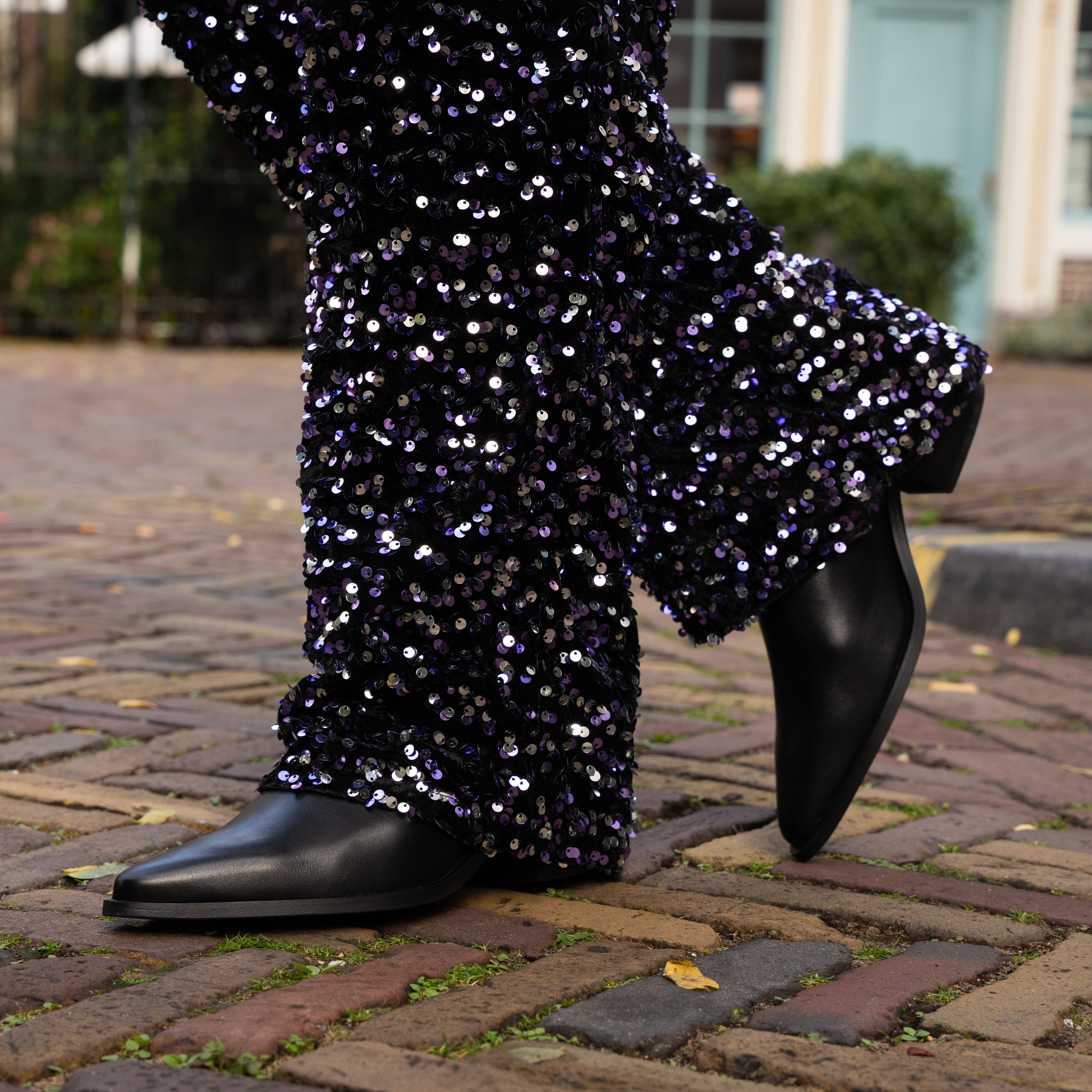 Lange Hose mit Pailletten in Schwarz und Lila: ideal für eine Party. Kombinieren Sie es mit dem passenden Oberteil oder einem anderen schönen Pullover oder Oberteil.