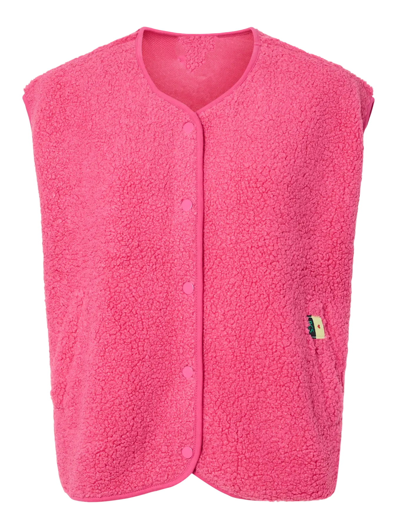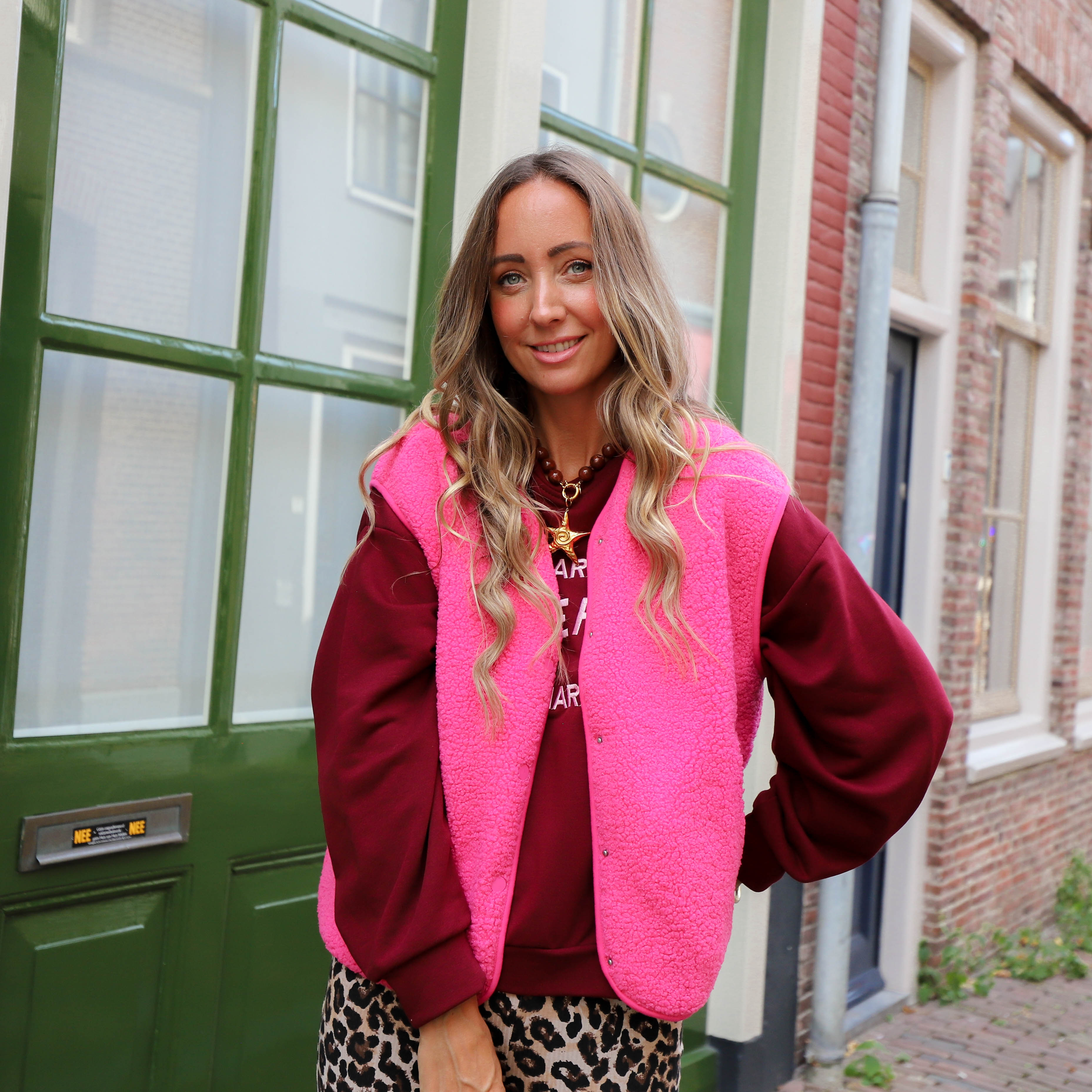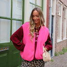 Voeg een vleugje vrolijkheid en ultiem comfort toe aan je garderobe met ons 'Katty Teddy Vest' in de kleur shocking pink. Dit heerlijk zachte vest van Pieces is een echte eyecatcher dankzij de opvallende kleur en de knuffelzachte teddy-stof. De mouwloze pasvorm met rits aan de voorkant en handige steekzakken maakt het de perfecte laag om je outfit direct op te fleuren.