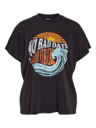 Schönes graues Shirt von Noisy May. Das Shirt hat einen fröhlichen Aufdruck mit Sonnenschein in verschiedenen Farben.