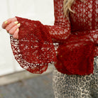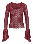 Dieses elegante, tiefrote Top ist ein Must-have für jede Garderobe. Das Oberteil hat ein Spitzendesign und weite Ärmel und ist somit perfekt für einen Abend oder einen besonderen Anlass. Der O-Ausschnitt und die bequeme Passform machen das Oberteil sowohl stylisch als auch bequem. Auch schön unter einem Pullover zu tragen!