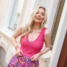 Wunderschönes grob gestricktes Top von Noisy May in Pink. Das Top sieht toll zu Jeans, Shorts oder Leggings aus, lässt sich aber auch gut zum Bikini kombinieren.
