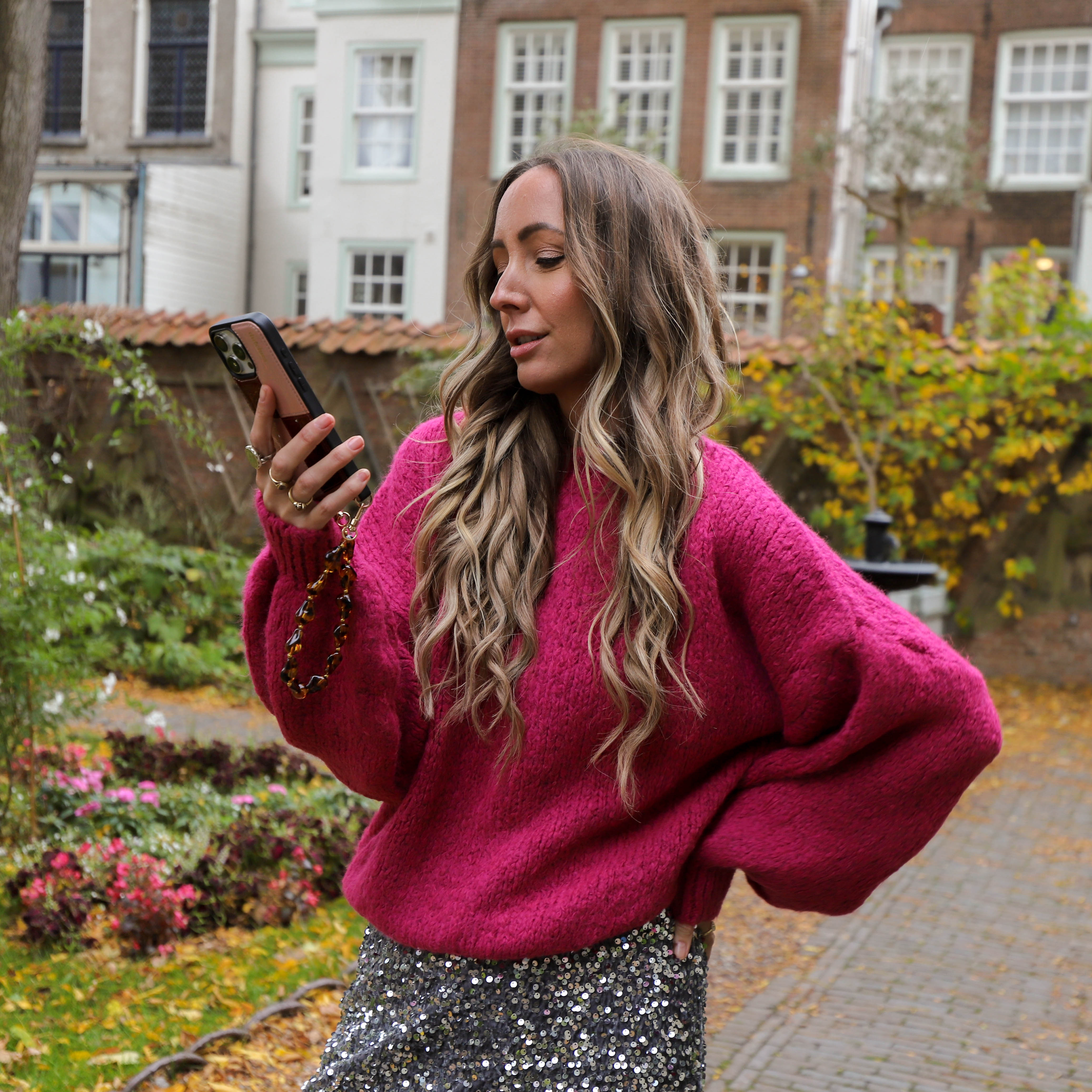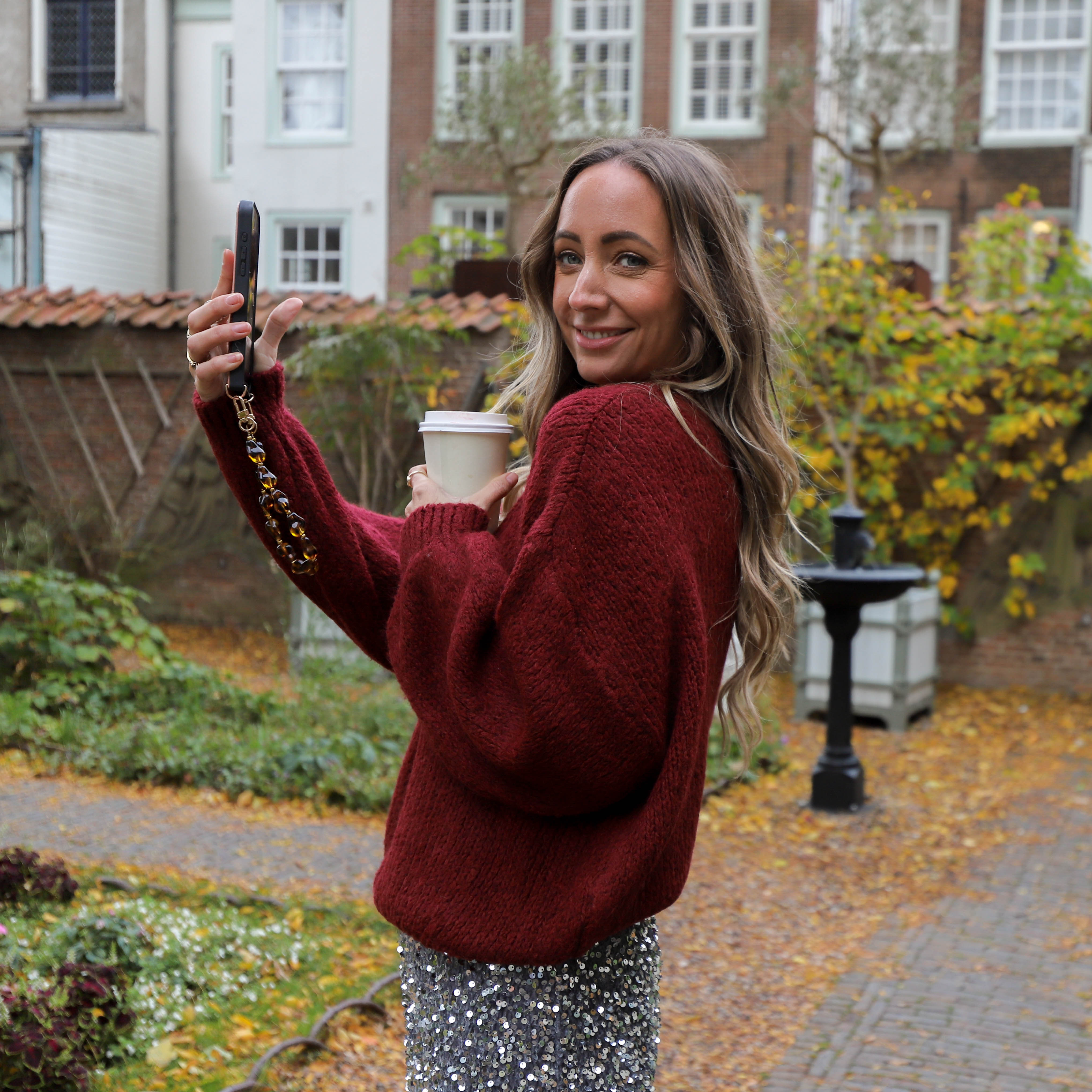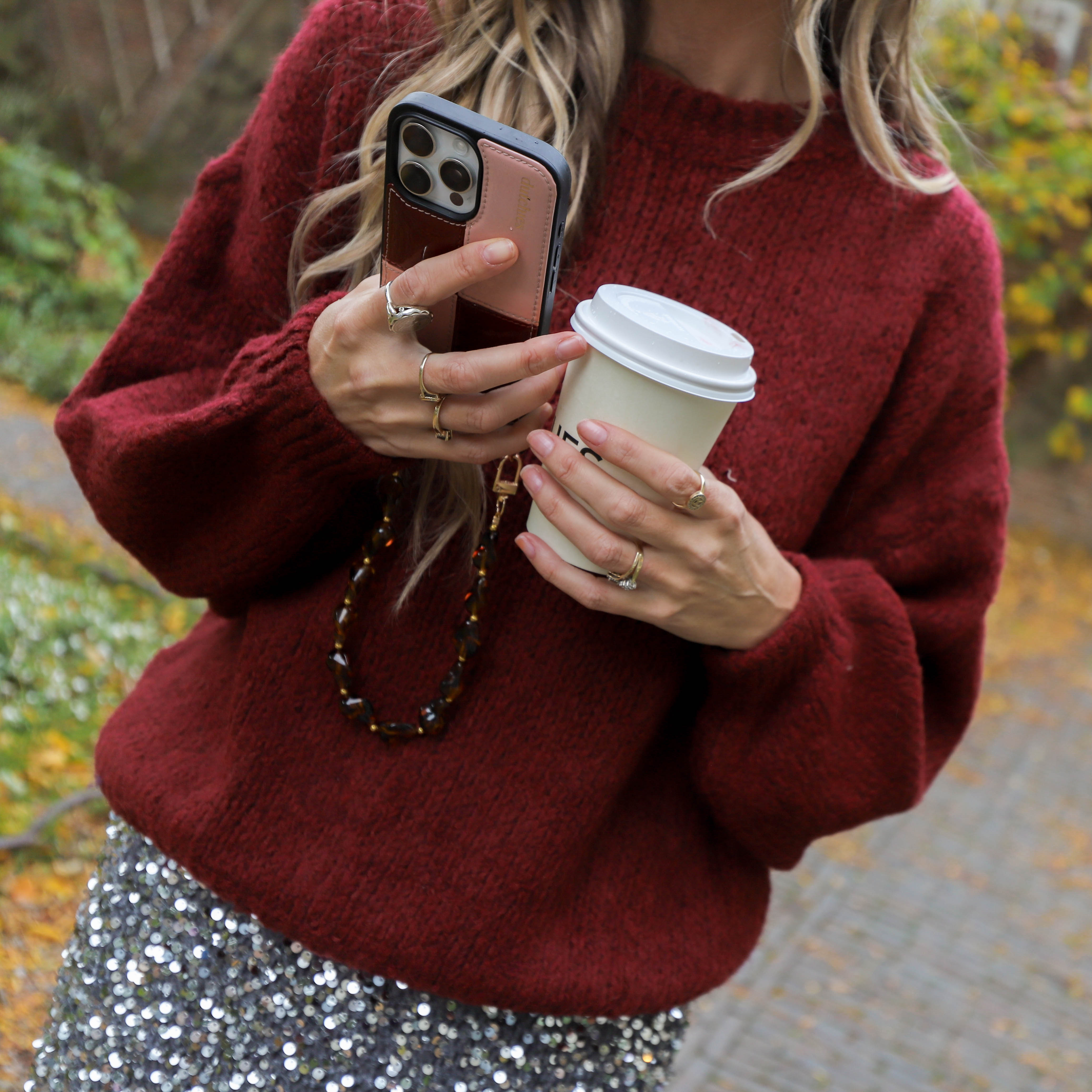 Mooi phone cord met acryl stenen in een mooie tint bruin.
