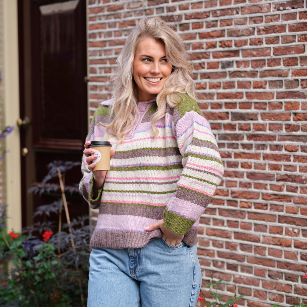 Deze pcRye Ls Polo Knit is een trendy, gebreide trui met een vintage vibe. De trui combineert een speels streepdessin in een warm kleurenpalet van verschillende kleuren. De opvallende, grofgebreide polokraag en de knoopsluiting met grove knopen geven deze trui een uniek silhouet. De trui heeft een comfortabele, iets cropped pasvorm. Style 'm met een rechte jeans en stoere laarzen voor een moderne, gelaagde look.