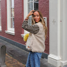 Geef je outfit een comfortabele en stoere twist met dit leuke ecru teddy gilet. Dit gilet heeft een mouwloze pasvorm en is gemaakt van een zachte en dikke teddy stof. Het gilet heeft een opgestikte zak met een rits, wat zorgt voor een trendy en functionele uitstraling.