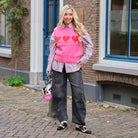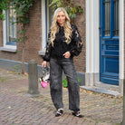 Deze Wide Denim Jeans is een must-have voor een relaxte en trendy look. De jeans is uitgevoerd in een stoere zwarte denim met een acid wash afwerking, wat zorgt voor een edgy, vintage uitstraling. De wijde, licht ballonvormige pijpenen de comfortabele pasvorm maken deze jeans perfect voor een nonchalante vibe.