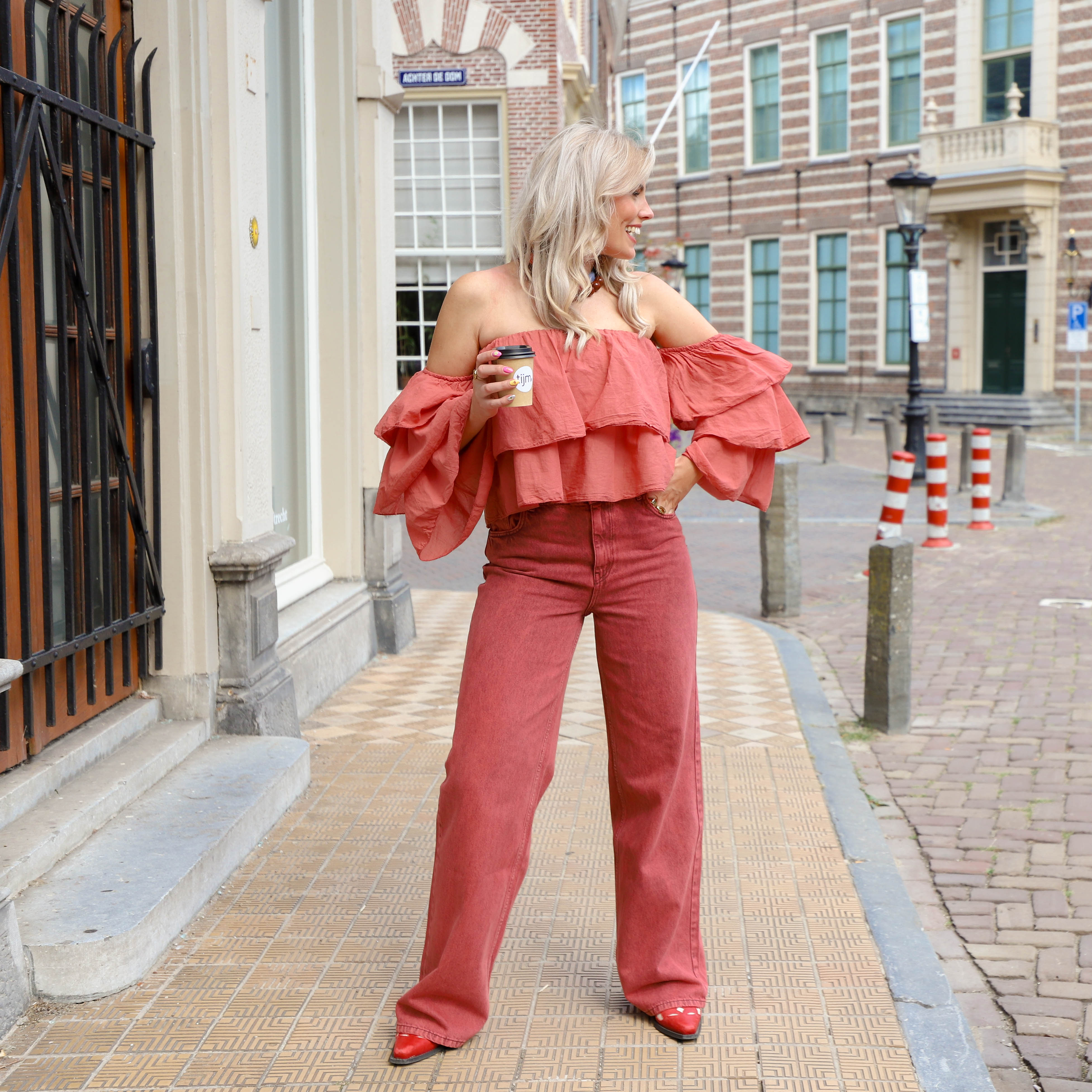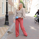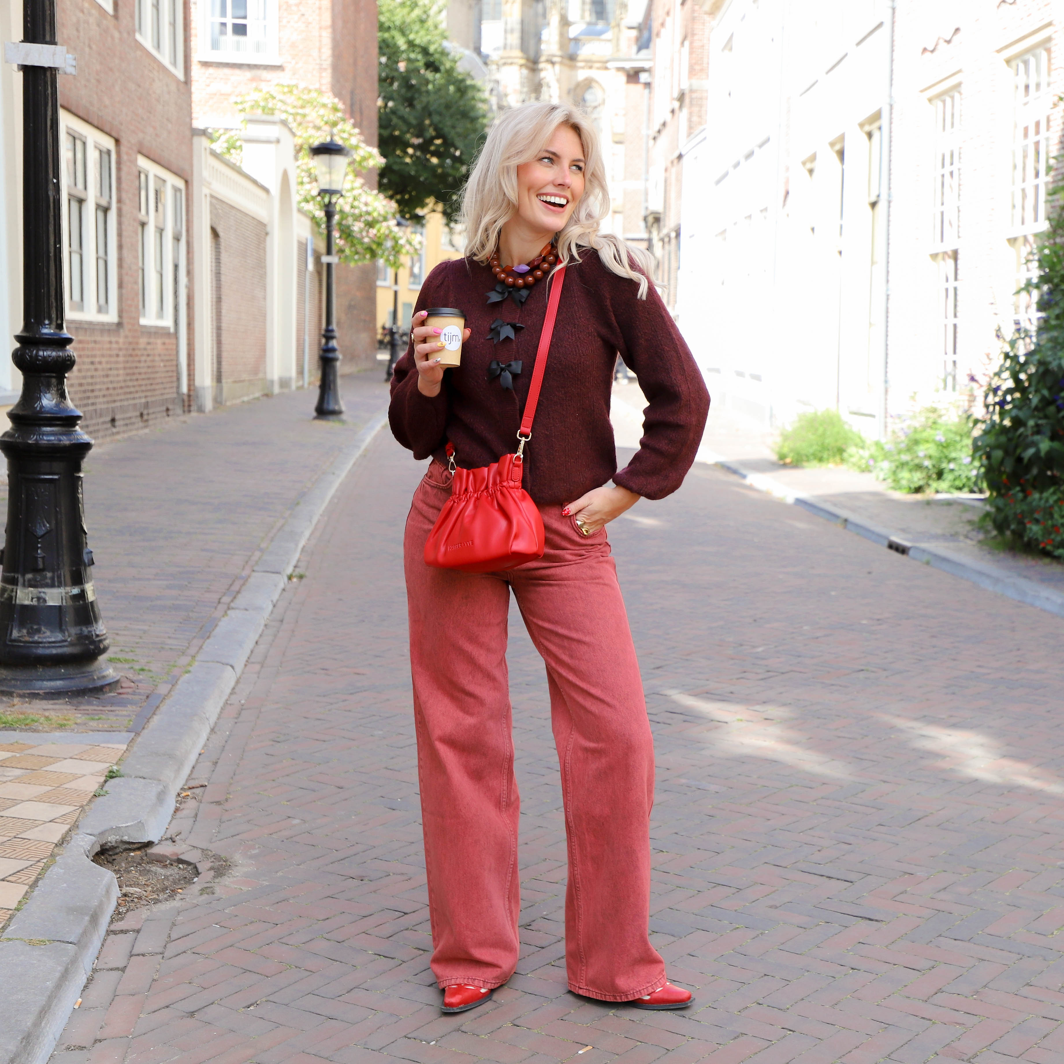 De YVE pants in BRICK RED is een rechte broek met een lichte stretch en een diepe baksteenkleur. Draag als ton-sur-ton set of combineer met prints voor contrast. Combineer met onze sol top.