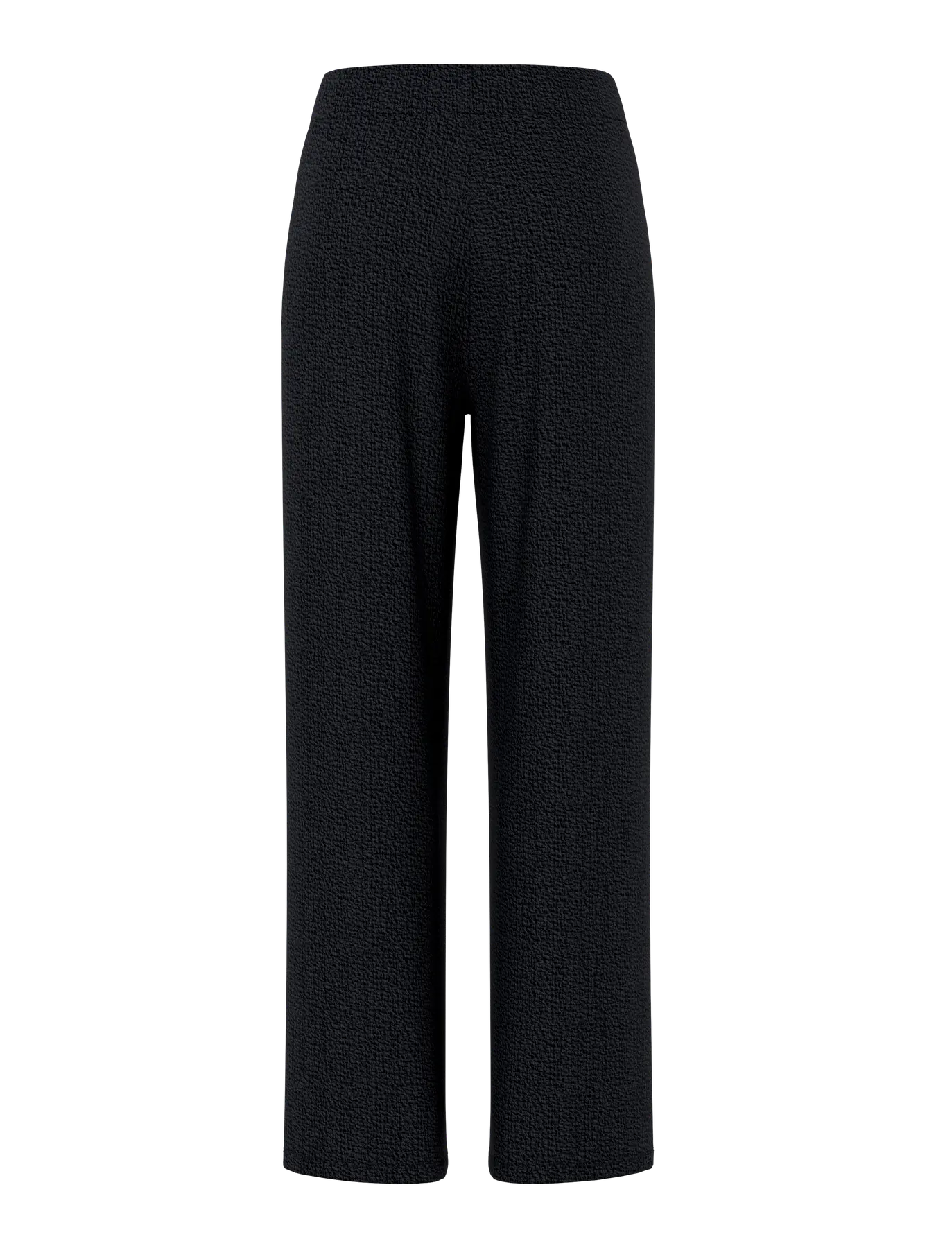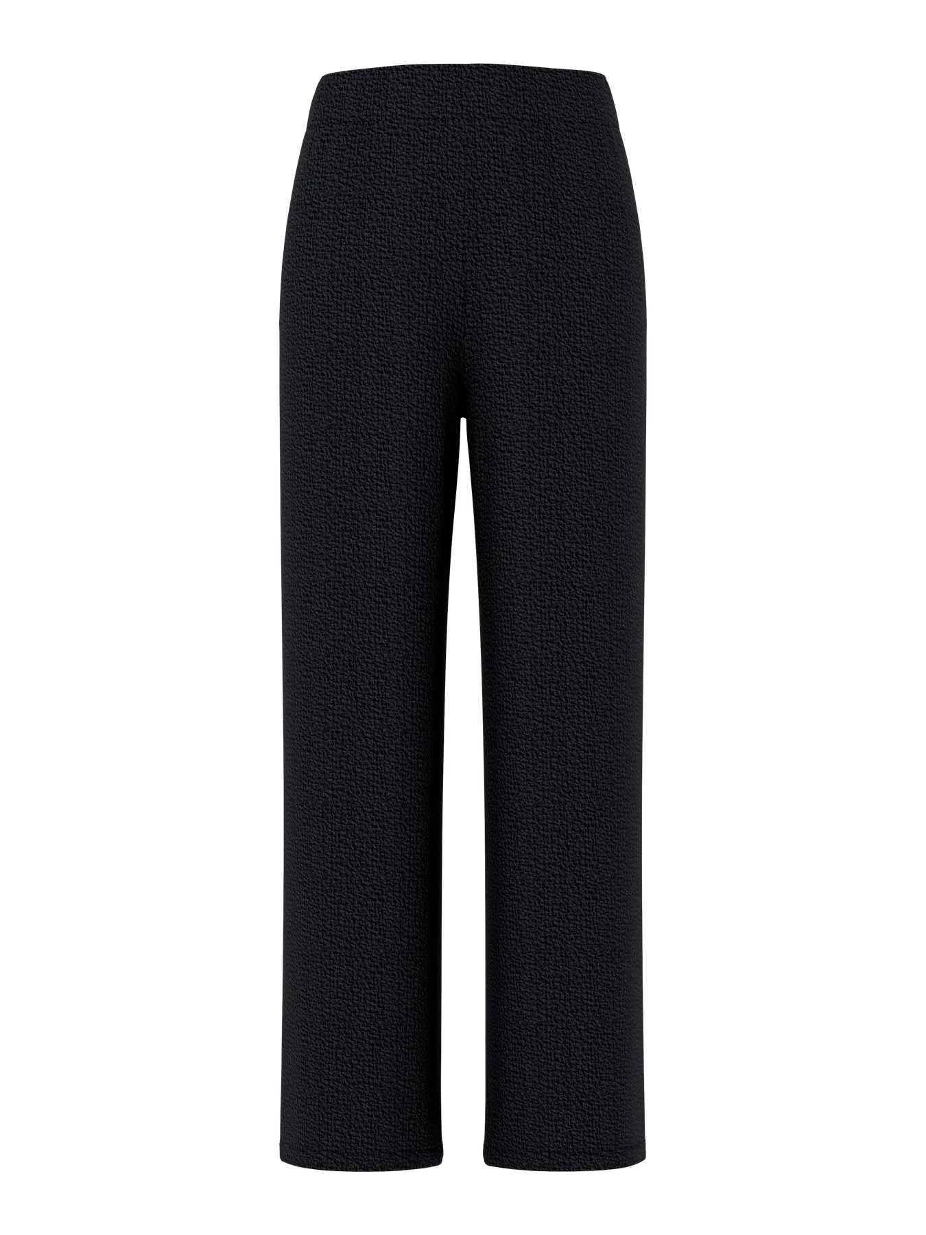 Deze broek, gemaakt van een lichte en comfortabele stof met een opvallend reliëf, is een ideale aanvulling op je garderobe. De broek heeft een elastische tailleband die voor extra comfort zorgt en perfect past. Combineer hem met de bijpassende top voor een complete look, of met een simpele basic voor een casual uitstraling.