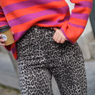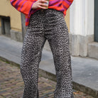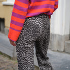 Deze Leo Broek is een statement pantalon voor een stoere, trendy look. De broek is uitgevoerd in een opvallende zwart-witte luipaardprint en heeft een comfortabele pasvorm. Dankzij de elastische tailleband aan de achterkant en de zachte stof (100% katoen) biedt deze broek optimaal draagcomfort, terwijl de rechte pijpen zorgen voor een coole, nonchalante uitstraling. Style 'm met een basic zwarte top en stoere laarzen om de print te laten knallen.