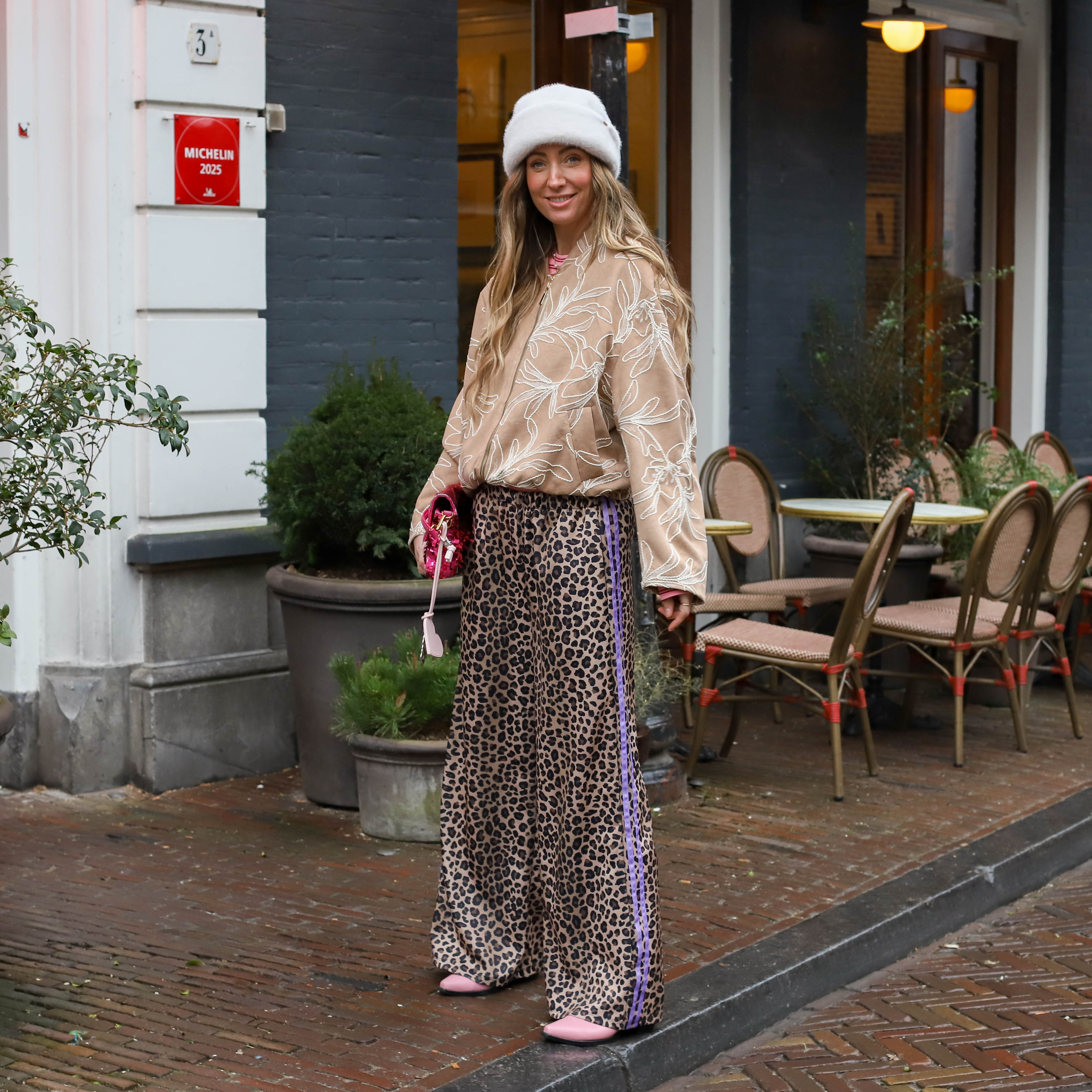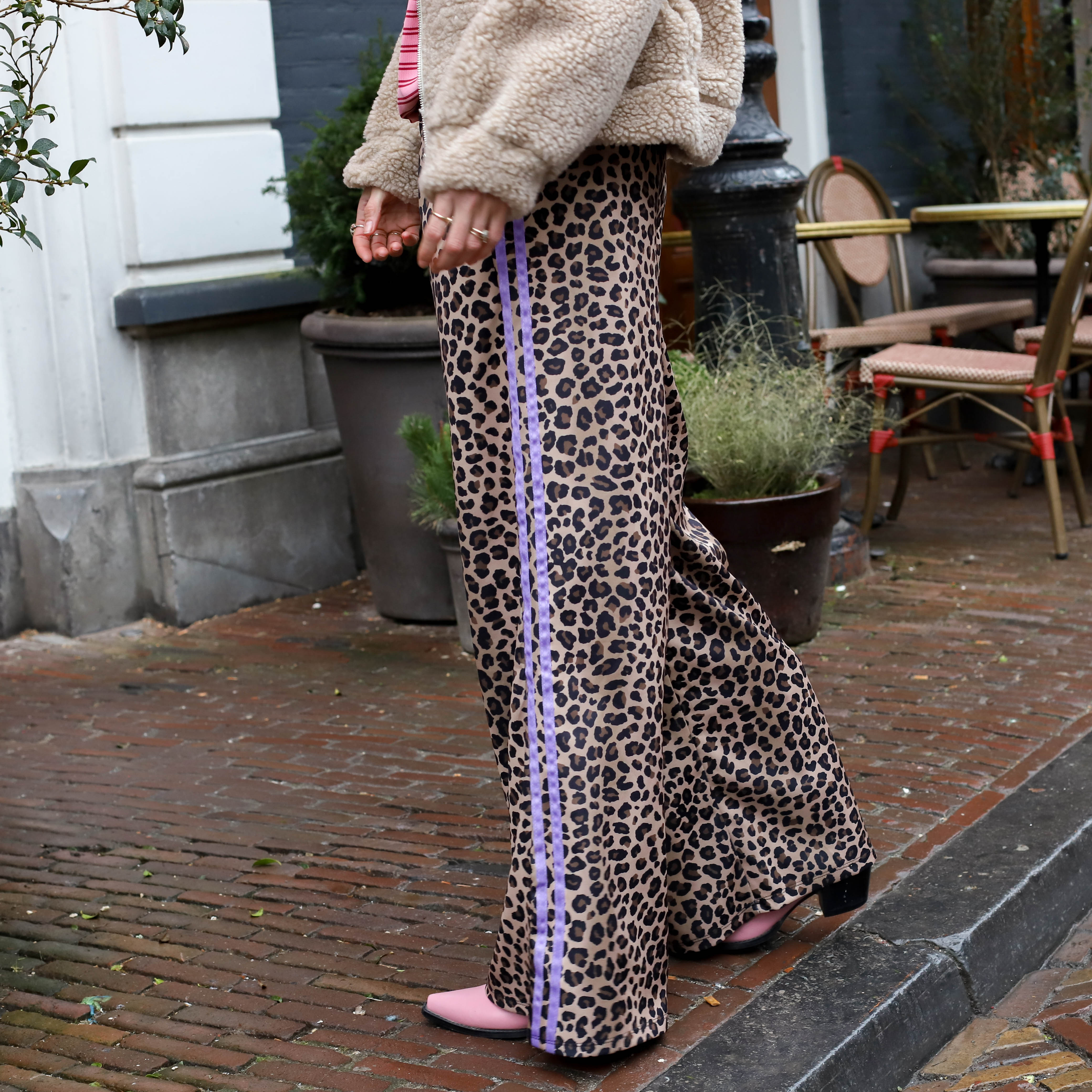 Leopard pantalon light paarse bies