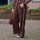 Deze Sola Pants is je nieuwe favoriete pantalon: comfy genoeg voor thuis en chic genoeg voor kantoor. De broek heeft een diepe chocoladebruine kleur en een superzachte stof die soepel valt. De slimme elastische tailleband aan de achterkant zorgt voor optimaal draagcomfort, terwijl de strakke, rechte pijpen je look netjes maken. Style 'm met sneakers en een stippen top.