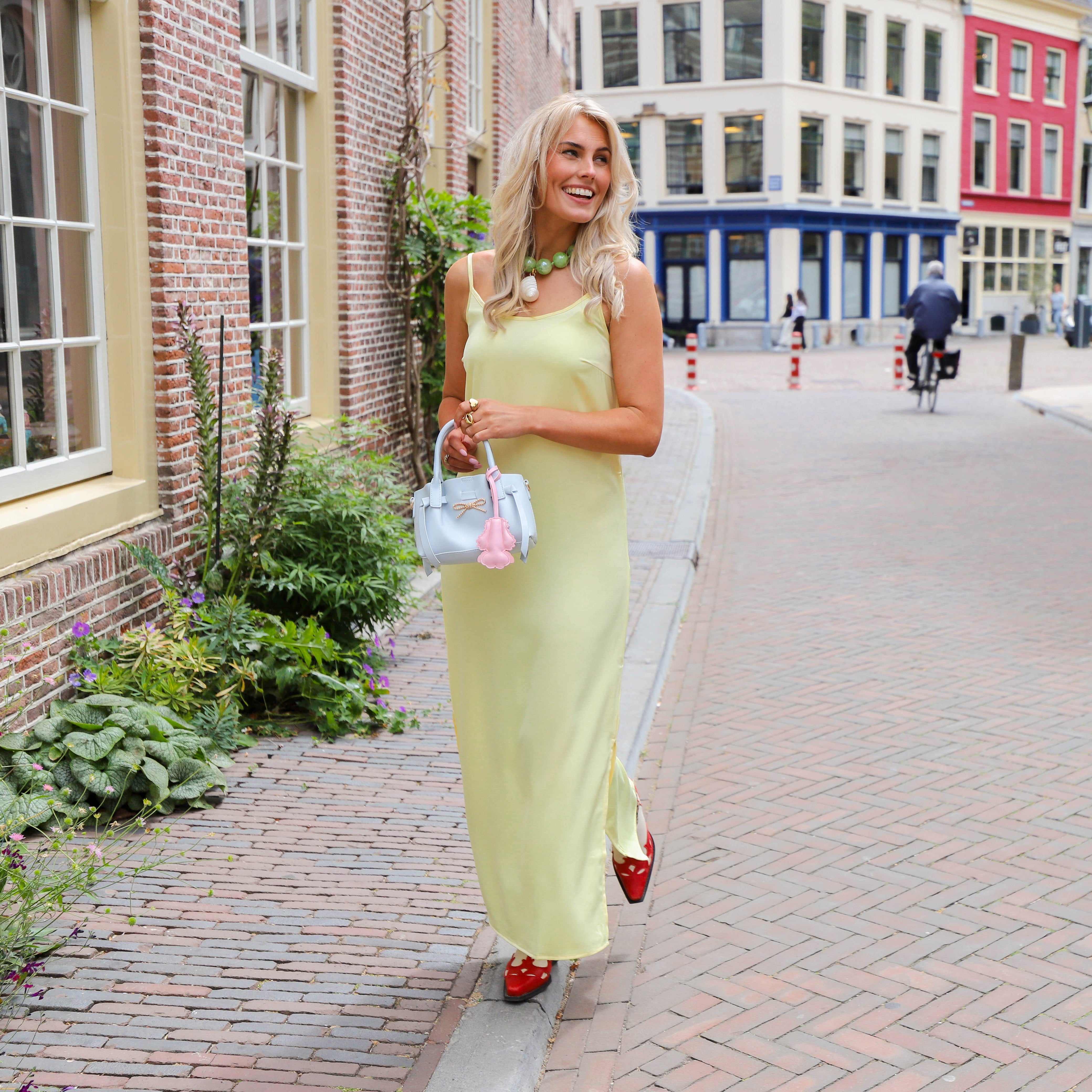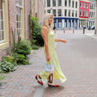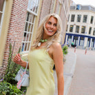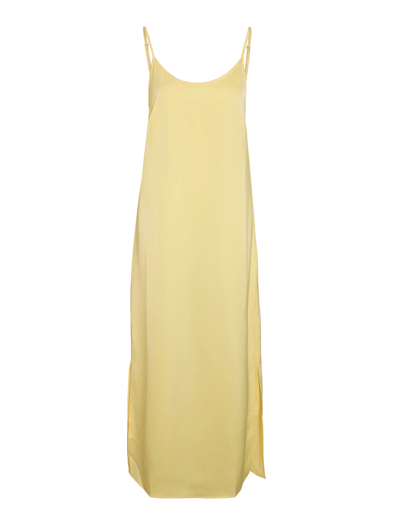 Deze elegante 'nmsaphira strap dress' is perfect voor zowel een feestelijke gelegenheid als een stijlvolle alledaagse look. De jurk is uitgevoerd in een zachte, glanzende crèmekleurige stof die soepel langs het lichaam valt.