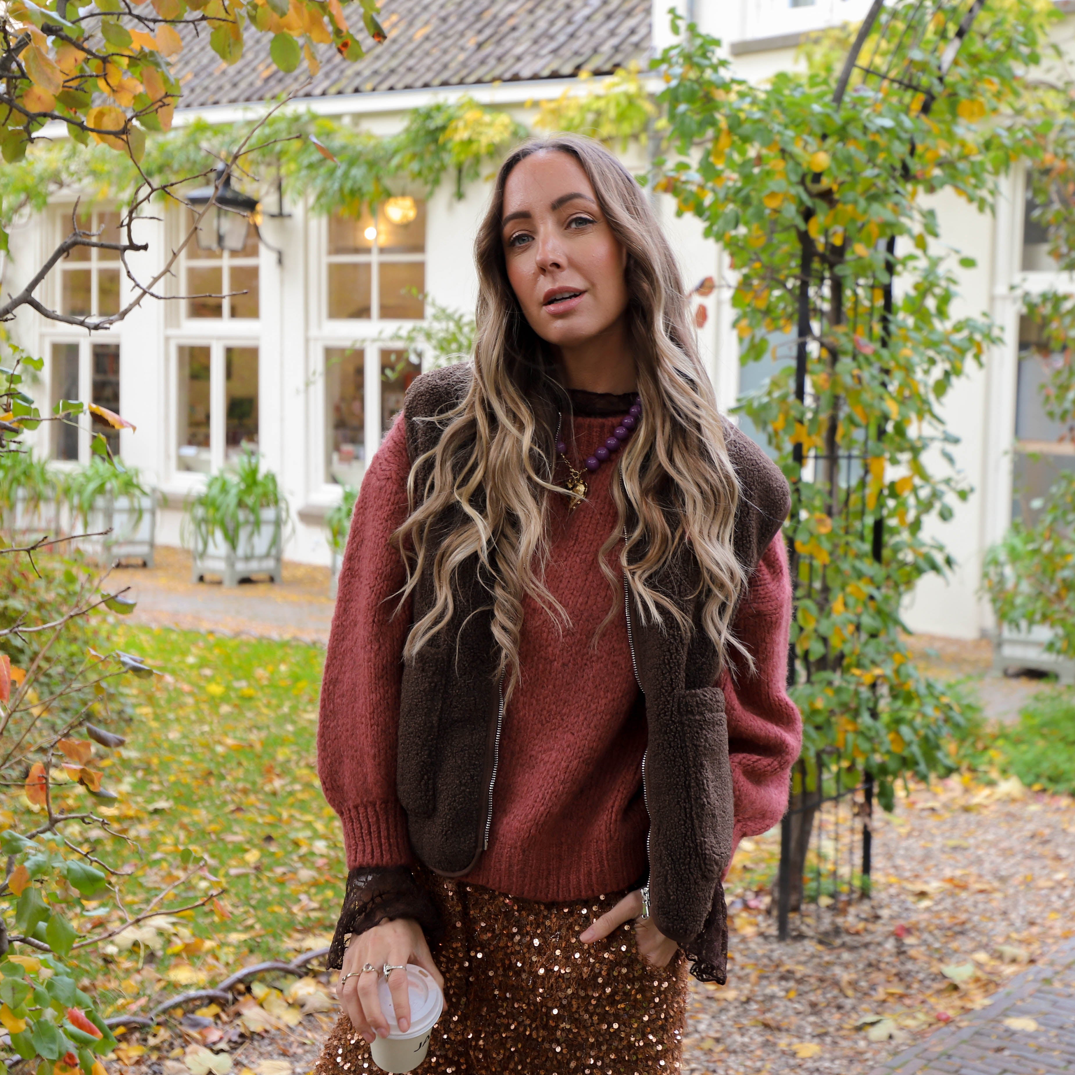 Dit Amy Gilet is een trendy en comfy toevoeging aan je layering look. Het gilet is gemaakt van zachte teddy fleece in een opvallende bruine kleur en heeft een ronde hals en een ritssluiting. De twee grote opgestikte zakken aan de voorkant en de kleine, roze 'California' patch op de borst geven dit gilet een sportieve, retro vibe.