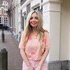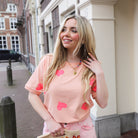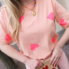 Dieses fröhliche pfirsichfarbene T-Shirt ist mit seinem rosa Herz-Print ein echter Hingucker. Das Shirt ist perfekt, um Ihrem Outfit eine verspielte und trendige Note zu verleihen. Der weiche, dehnbare Stoff sorgt für ein angenehmes Tragegefühl und macht dieses T-Shirt ideal für den Alltag.