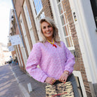 Steel de show met dit super cute lila jasje met een all-over hartjesprint! De gewatteerde textuur en de speelse details maken dit item een echte eyecatcher. Perfect om je outfit een flinke dosis liefde en stijl te geven!