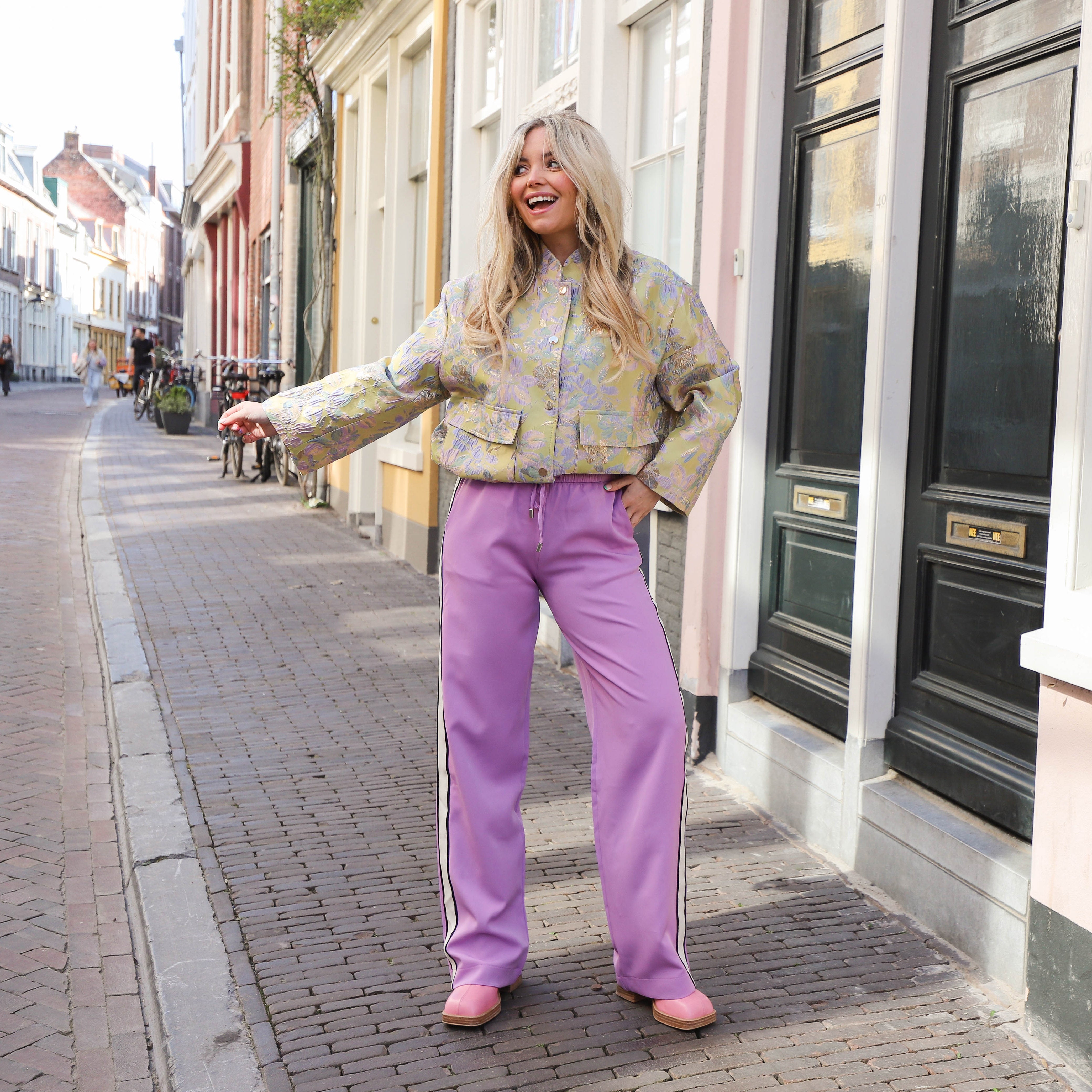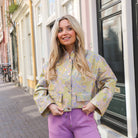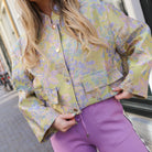 Diese gelbe Bomberjacke aus Jacquard ist ein auffälliges und stylisches Kleidungsstück. Die Bomberjacke hat einen einzigartigen Jacquard-Druck. Auch super für ein Festival!