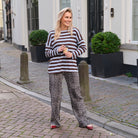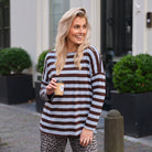 Deze Streep Top is een must-have basic met een chique twist. De top is uitgevoerd in een klassiek horizontaal streepdessin in een levendige combinatie van blauw en bruin. De soepelvallende stof, de elegante wijde boothals en de oversized pasvorm maken deze top perfect voor een nonchalante, maar verzorgde look.