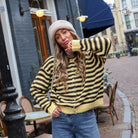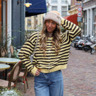 Streep vest knoop Julia geel bruin