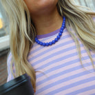 Deze Statement Kralen Ketting is een vrolijke en opvallende accessoire om kleur toe te voegen aan je outfit. De ketting bestaat uit grote, glanzende, blauwe kunststof kralen die een gedurfde en zomerse uitstraling geven.