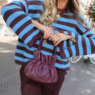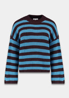 De ALICE jumper is dknit waar je deze herfst niet zonder kunt. De opvallende strepen in blauw en bruin geven iedere outfit een frisse, moderne twist. Gemaakt van een grofgebreide, zachte stof die soepel om je heen valt en je moeiteloos warm houdt tijdens koude dagen. De relaxte fit en ronde hals maken de ALICE niet alleen super comfortabel, maar ook eindeloos te combineren.