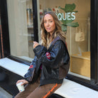 PLEUNI is een gevoerd jasje met rechte fit in een opvallende kleurcombinatie van zwart en chocoladebruin. De stof is stevig maar zacht, perfect voor tussen de seizoenen. Draag als buitenlaag of als structured vest boven een mesh top.