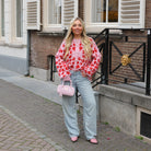 Het vest heeft een klassieke ronde hals en een knoopsluiting. De ruime, oversized pasvorm met pofmouwen en de zachte mix van materialen maakt het vest warm en comfy.