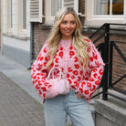 Dit Leopard Vest is een opvallende en heerlijk zachte toevoeging aan je knitwear collectie. Het vest is grof gebreid met een harige textuur en heeft een gedurfd luipaardpatroon in roze en rood.