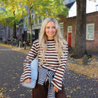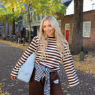 Deze Lilou Top is een comfy en kleurrijke basis voor je dagelijkse look. De top is gemaakt van een zachte, soepele stof en heeft een opvallend horizontaal streepdessin in een klassieke combinatie van ecru en bruin.
