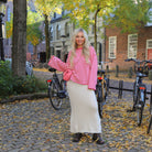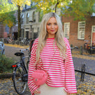 De top heeft een ruime, oversized pasvorm, een ronde hals afgewerkt met een roze bies en brede mouwen. De zachte mix van materialen met veel katoen en elastan zorgt voor een comfortabele en soepele fit met een trendy, boxy silhouet.