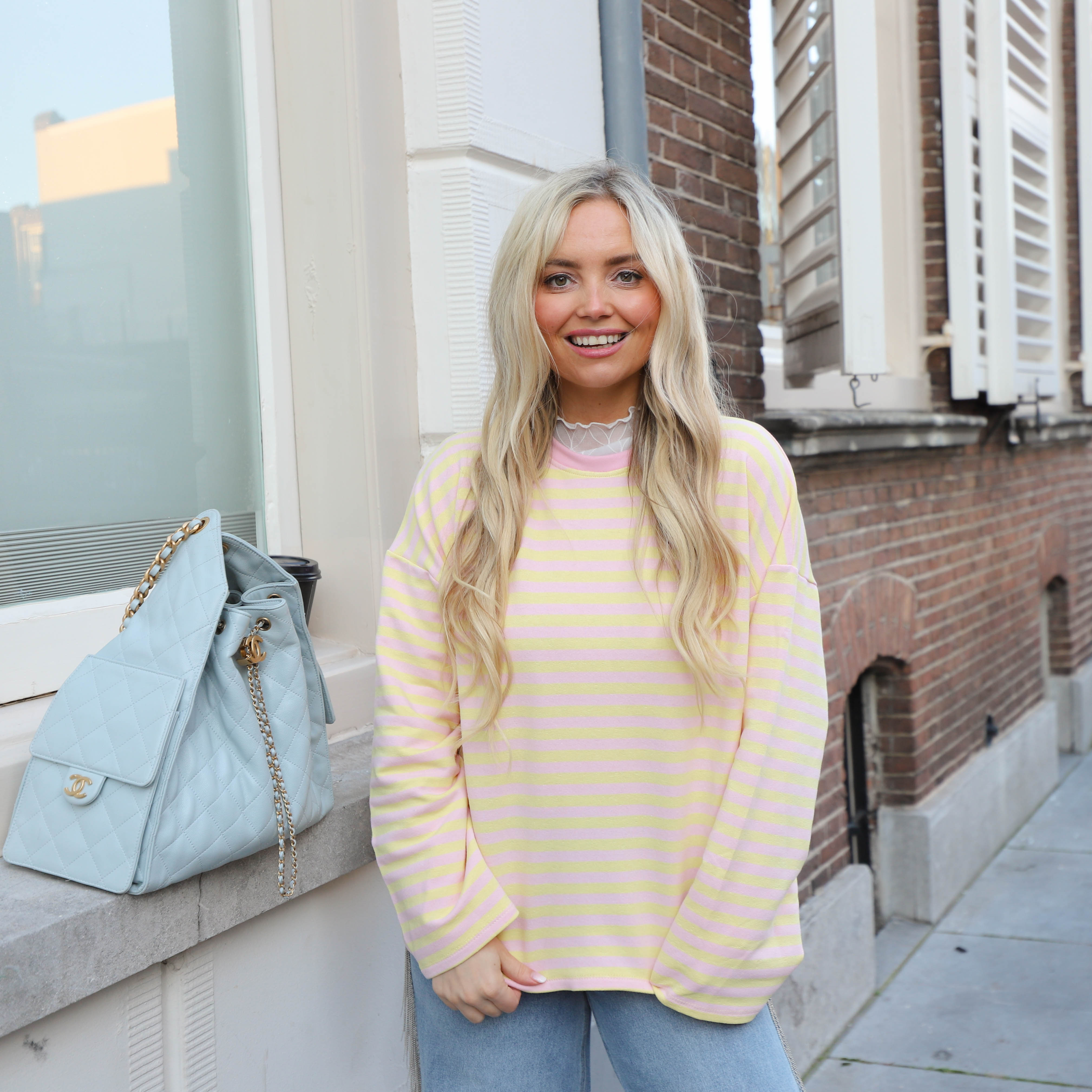 Lora streep top geel roze
