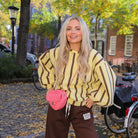 Deze Streep Sweat is een comfortabele en trendy trui die een vrolijke touch geeft aan je casual look. De sweater heeft een zachte, katoenen stof en een opvallend geel met donkerbruin diagonaal streepdessin. De wijde, oversized pasvorm, de ronde hals en de aansluitende boorden aan de onderkant en mouwen zorgen voor een moderne, nonchalante uitstraling.