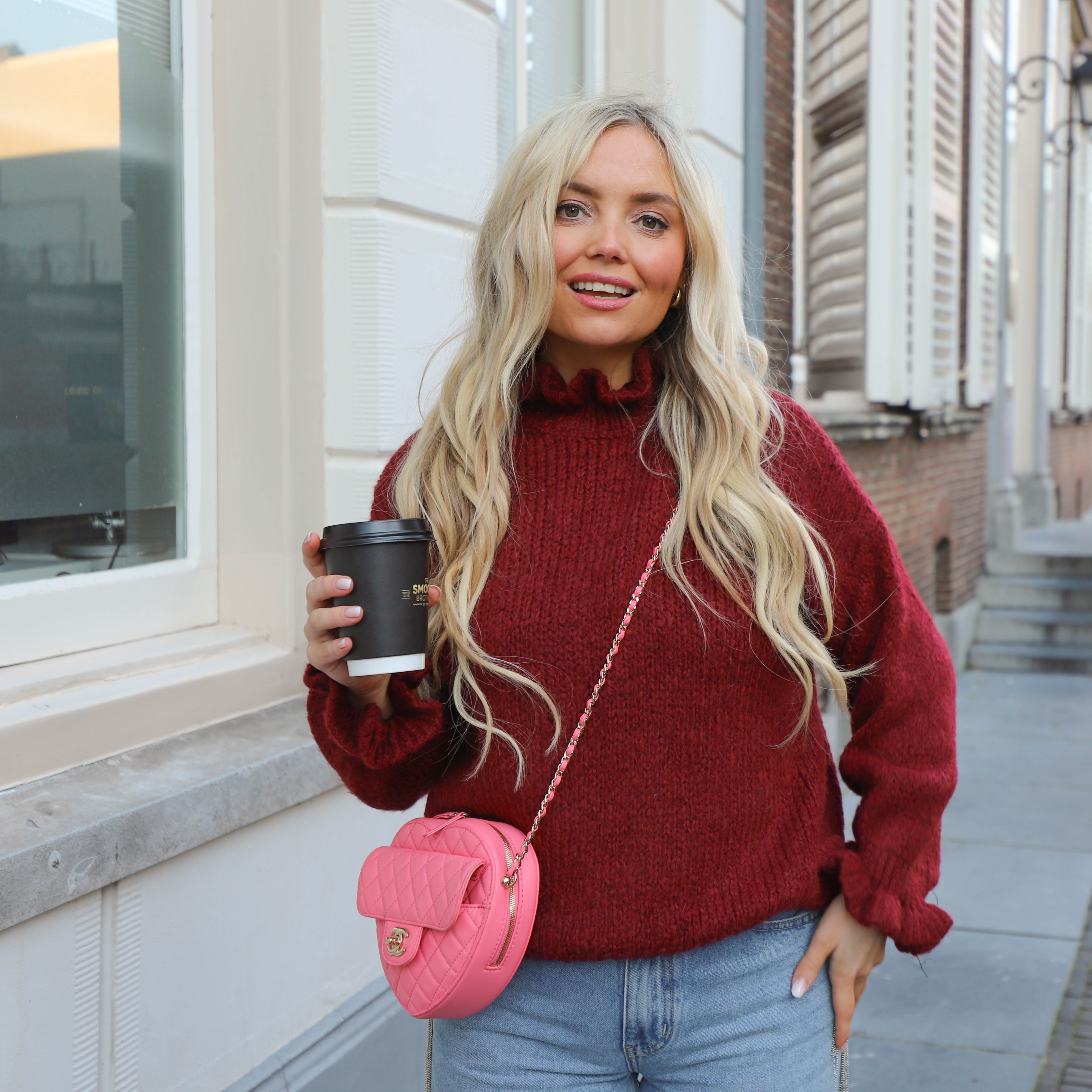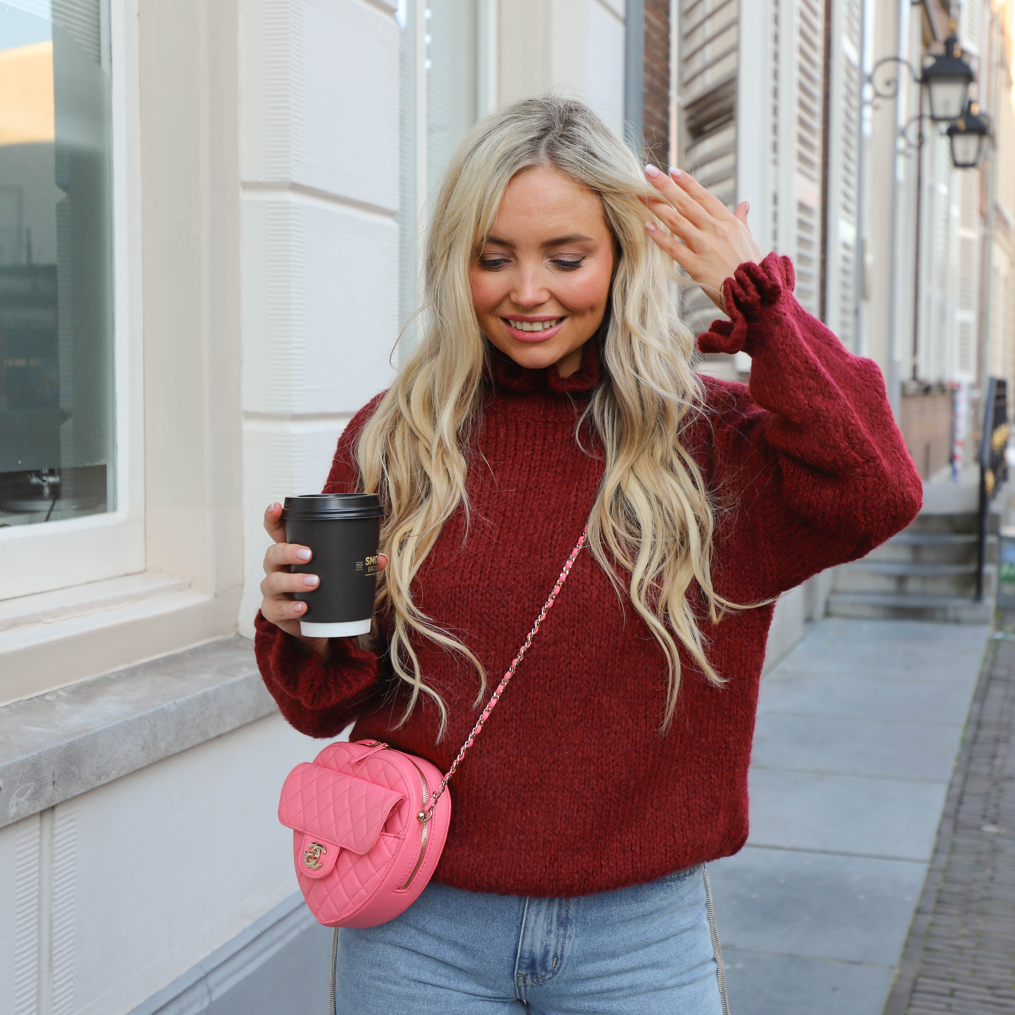 Ruffle trui burgundy